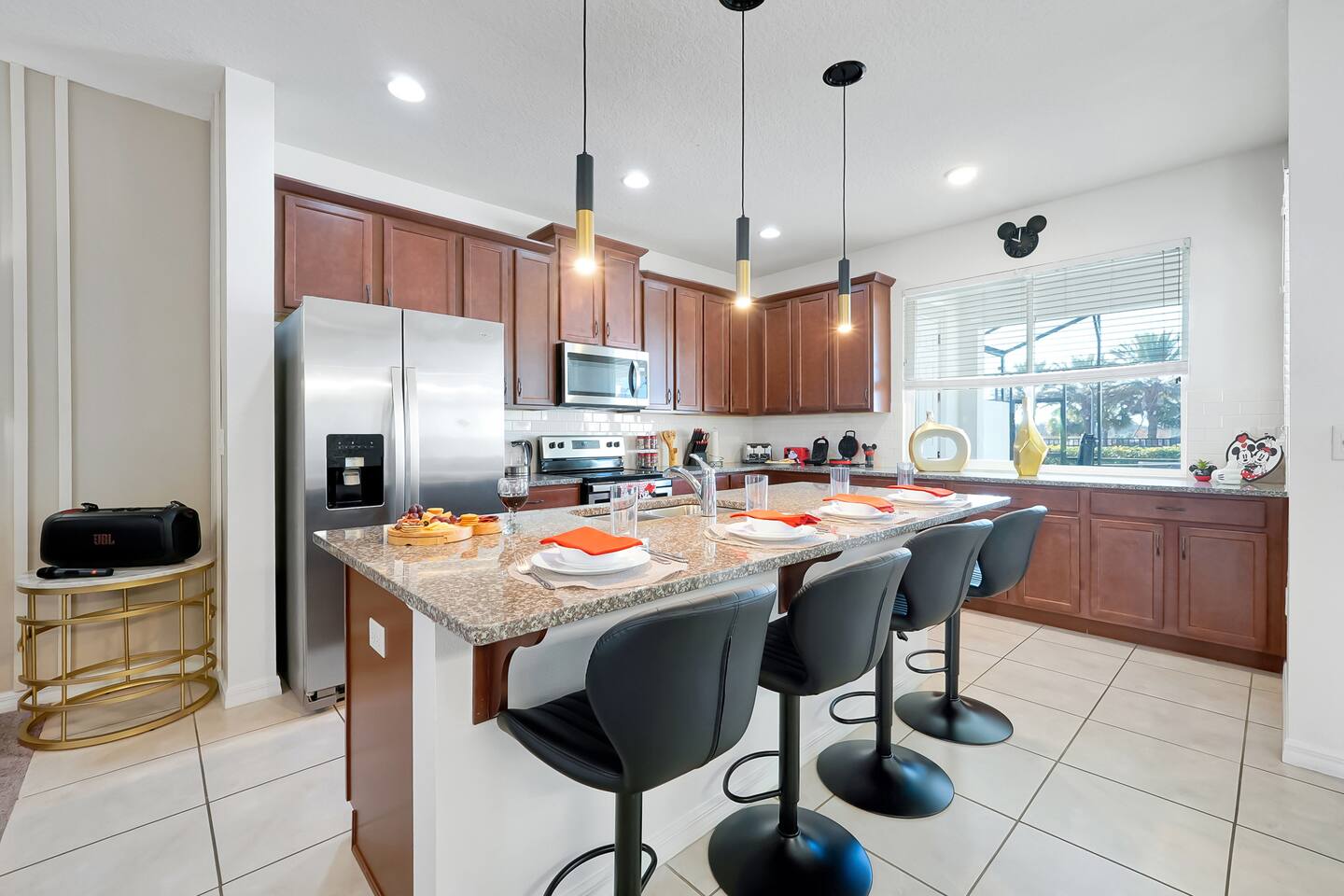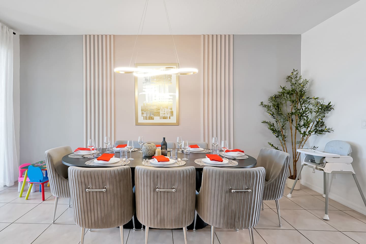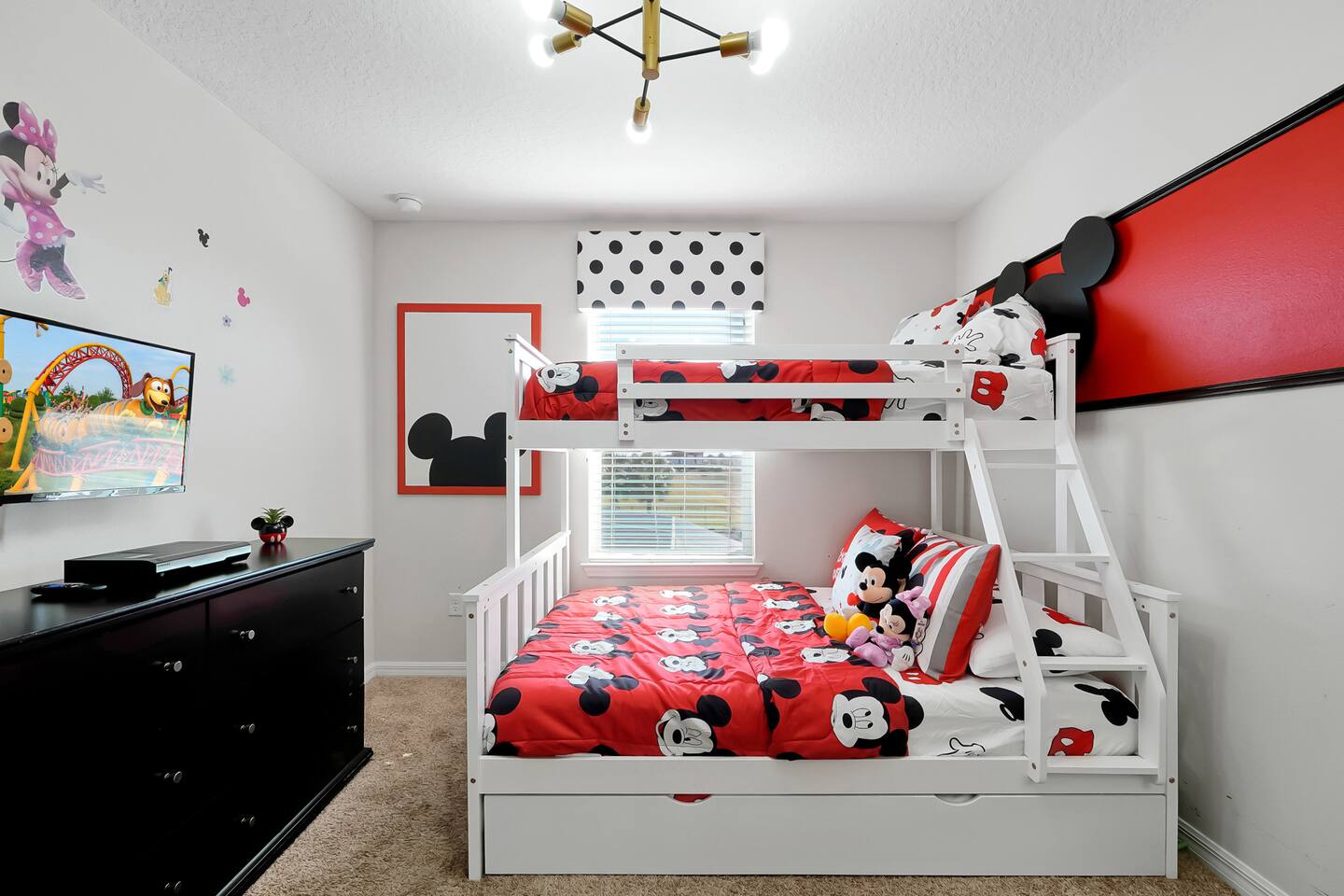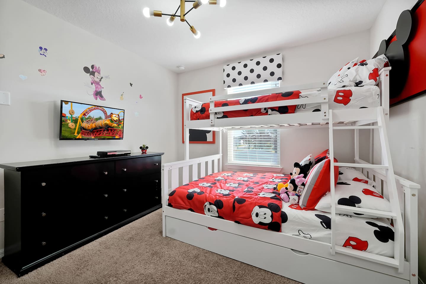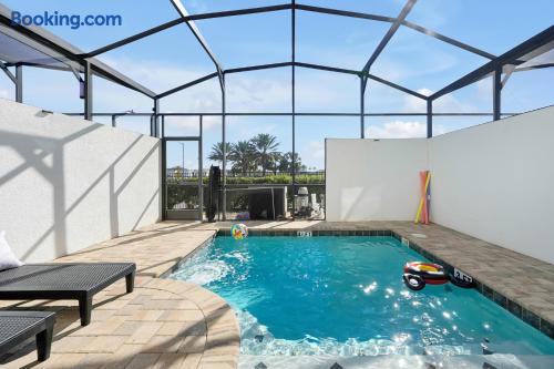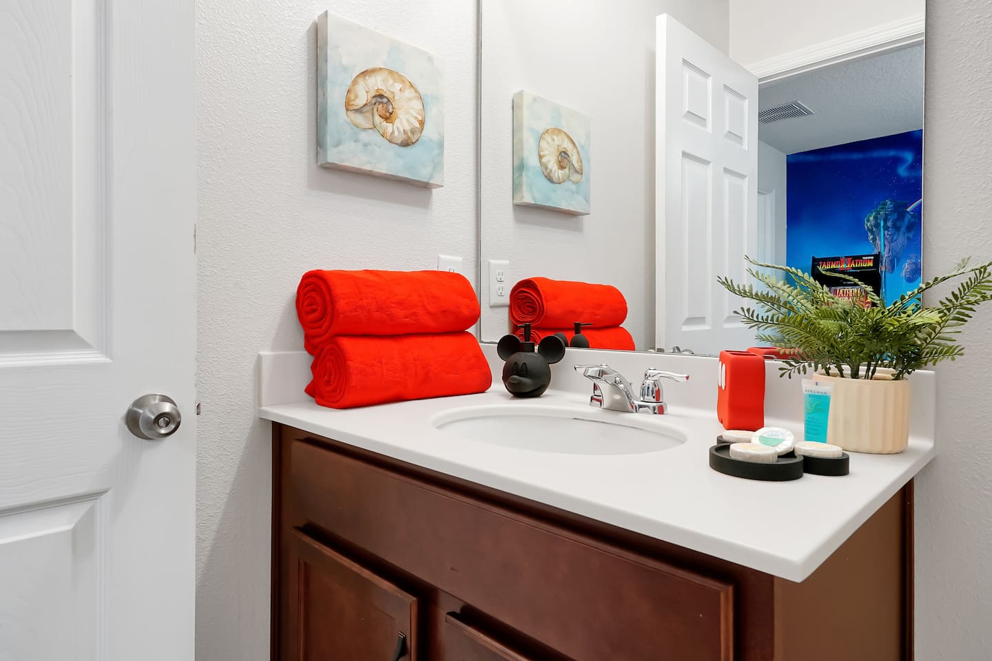 This well-equipped home is designed for a comfortable and easy stay, whether youโre visiting for theme parks or a longer getaway. Central air conditioning keeps the home cool year-round, and a full washer and dryer are available for guest use. Fresh towels and linens are provided for your stay (washcloths are not included), along with practical essentials like hair dryers, an iron, and an ironing board. The family room features a large flat-screen TV and opens to the outdoor area with patio furniture and sun loungers. Guests enjoy self check-in with a private door code assigned for each stay, making arrival simple and flexible. FIRST FLOOR โข Bedroom 1: King bed โข Full bathroom next to the bedroom โข Half bath located near the pool area SECOND FLOOR โข Bedroom 2: King bed with private bathroom โข Bedroom 3: Bunk bed (twin over full) with a sliding twin bed โข Bedroom 4: Bunk bed (twin over full) plus a separate twin bed, with private bathroom โข Loft area with pull-out sleeper sofa โข Full hallway bathroom USEFUL INFORMATION โข Check-in: After 4:00 PM โข Check-out: Before 10:00 AM โข Parking: Free on-site parking, up to 6 cars per home โข Street parking is not permitted โข No commercial vehicles, RVs, trailers, buses, golf carts, or watercraft allowed This home is self-catering. A small welcome kit is provided to get you started, and a nearby supermarket is available for additional supplies. Pool heating: Pool heating operates via heat exchange and may not function effectively in cold weather. Safety systems may cause the heater to cycle off temporarily in colder conditions.