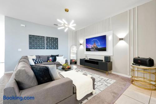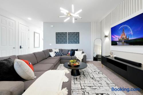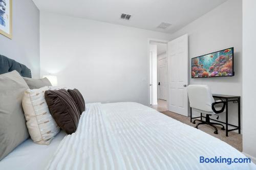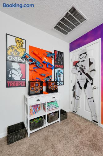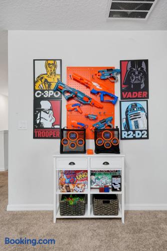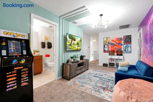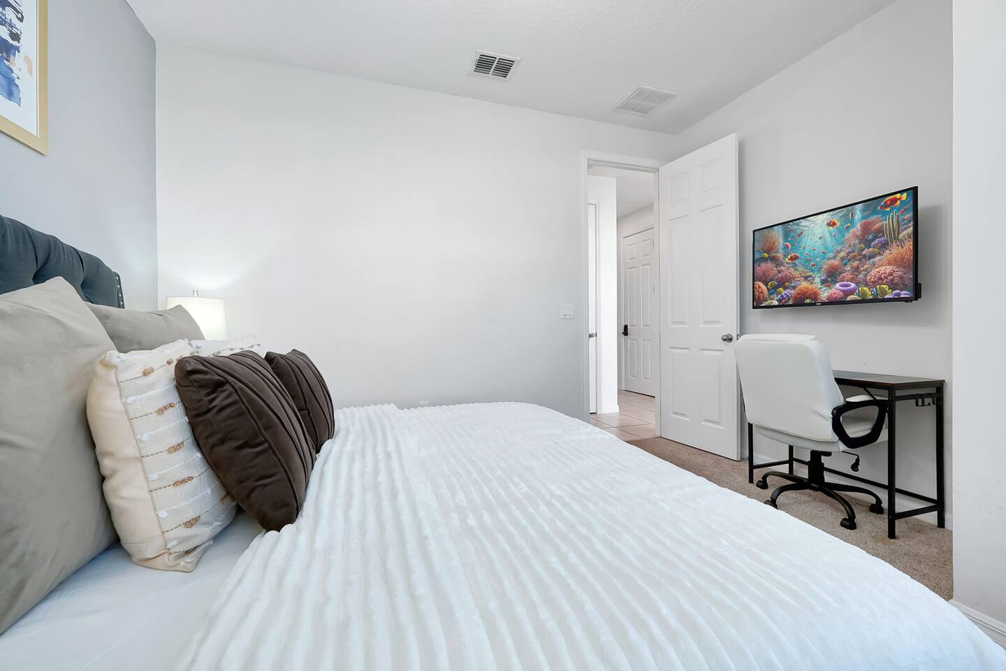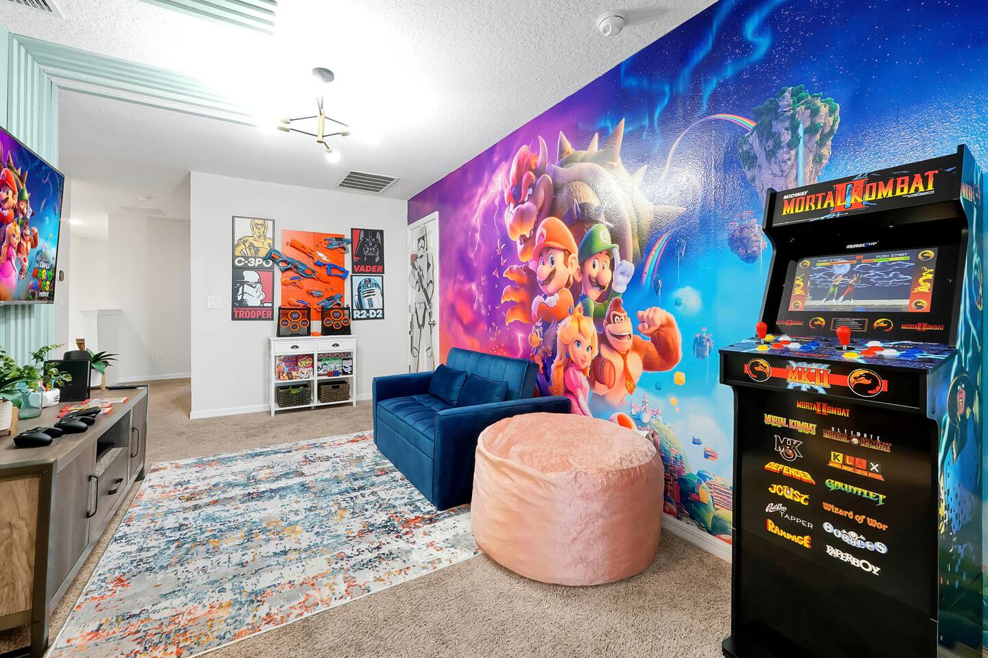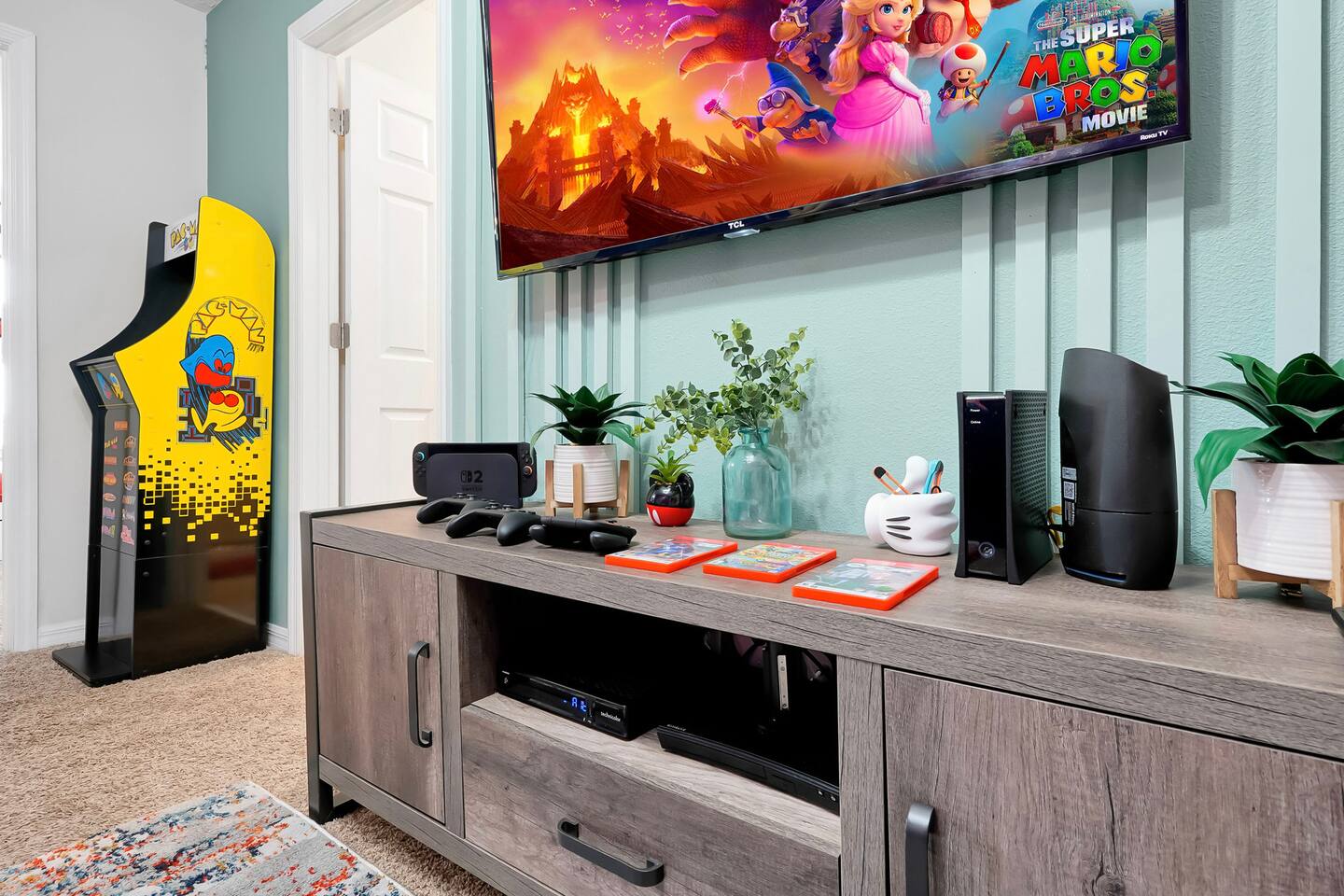 ๐ก Entire Kissimmee home in Solara Resort ๐๏ธ 4 bedrooms, sleeps 12 guests ๐ Private screened-in pool with safety fence ๐ฎ Game room with arcade fun for all ages ๐ฝ๏ธ Fully equipped kitchen & dining area ๐บ TVs in every bedroom ๐งธ Family-friendly: bunks, Pack โn Play & high chair ๐ Free on-site parking ๐ช Access to resort gym, pool, splash pad & dining ๐ Nearby Attractions ๐ข Disney โ 5 miles ๐ฌ SeaWorld โ 10 miles ๐ฌ Universal โ 13 miles ๐ข Convention Center โ 12 miles ๐งฑ Legoland โ 33 miles