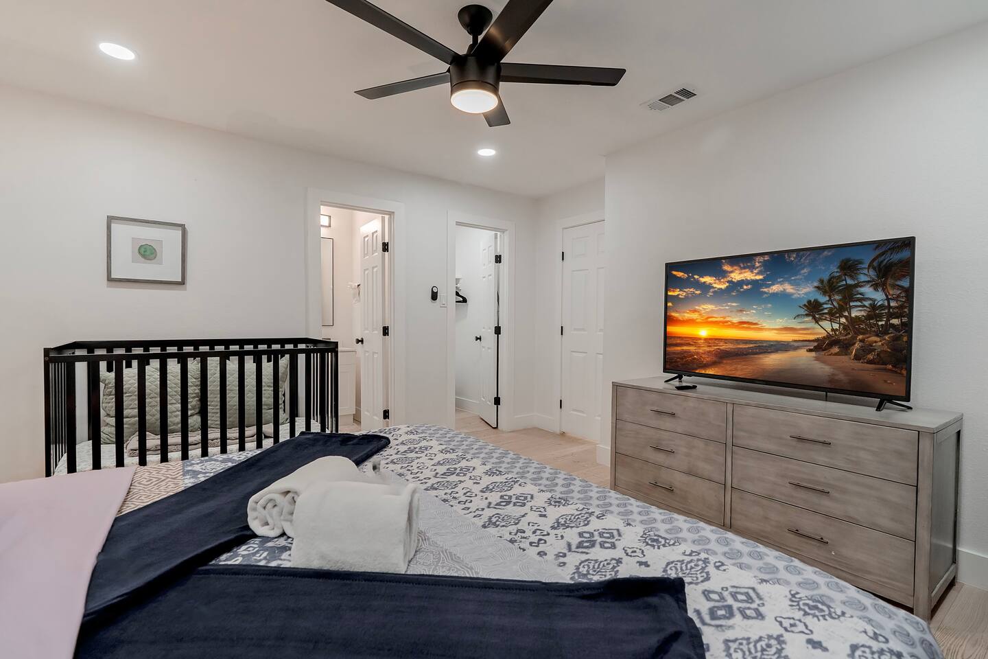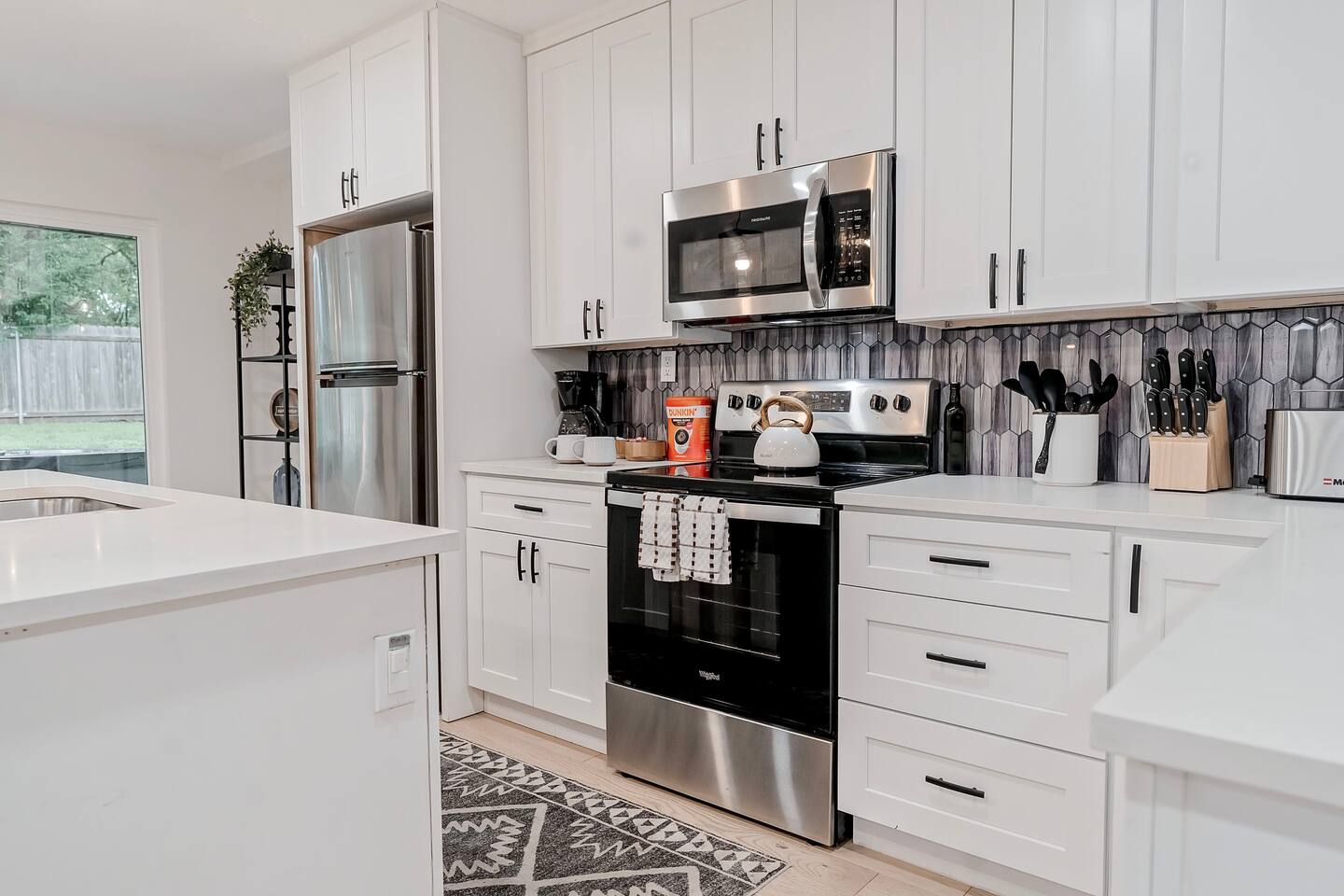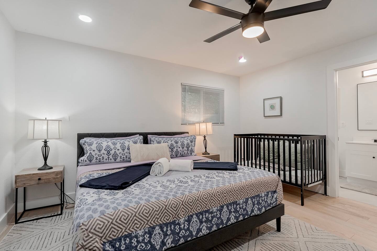 KEY FEATURES ☀ 4 inviting bedrooms; plush beds for up to 10 guests ☀ 3 full bathrooms ☀ Fully equipped kitchen & cooking essentials ☀ Open-concept living room with Smart TV, board games & fast Wi-Fi ☀ Dedicated workspace for remote work or study ☀ Private backyard oasis: 8-person hot tub, gas BBQ, dining set, fire-pit & lawn ☀ Game zone with full-size pool table ☀ Private driveway parking & keyless entry ☀ Pet-friendly, exterior security cameras for peace of mind ☀ A/C, heating, washer & dryer for year-round comfort ☀ Security Cameras ☀ We provide a baby crib (listed as a "cot" on Airbnb for U.S. guests) ☆☆ KITCHEN + LOUNGE ☆☆ The gourmet kitchen comes loaded with stainless-steel appliances, dishwasher, microwave, large fridge/freezer, and cookware. ☆☆ OUTDOOR SPACE ☆☆ Step into your private backyard oasis: Relax in the hot tub under sparkling café lights. Fire up the BBQ grill and enjoy dinner on the outdoor. Gather around the fire-pit for cozy evenings with friends and family. Challenge your group with a game of pool. Spacious lawn for pets or kids to run and play. This outdoor space is designed for both relaxation and fun — whether it's a morning coffee or a late-night soak in the hot tub. ☆☆ NEIGHBORHOOD & NEARBY ATTRACTIONS ☆☆ Located in East Austin, you’ll be close to everything that makes the city vibrant: Mueller Lake Park (5 min drive): perfect for morning walks, jogging, or family picnics. Downtown Austin (15 min drive): live music, nightlife, and cultural hotspots. Austin-Bergstrom Airport (20 min drive) for easy travel connections. ☕ Local eats & coffee: Hank’s, Paco’s Tacos, Batch Craft Beer & Kolaches. 🍺 Breweries & nightlife: Austin Eastciders, Zilker Brewing, and other East Side gems. 🛍️ Shopping: Mueller Market District & farmers market. 🎶 Live Music: Iconic East Austin venues just minutes away. ☆☆ HOSPITALS & ESSENTIALS NEARBY ☆☆ Dell Children’s Medical Center – 10 min St. David’s Medical Center – 12 min Grocery stores like HEB and Whole Foods Market within a short drive.