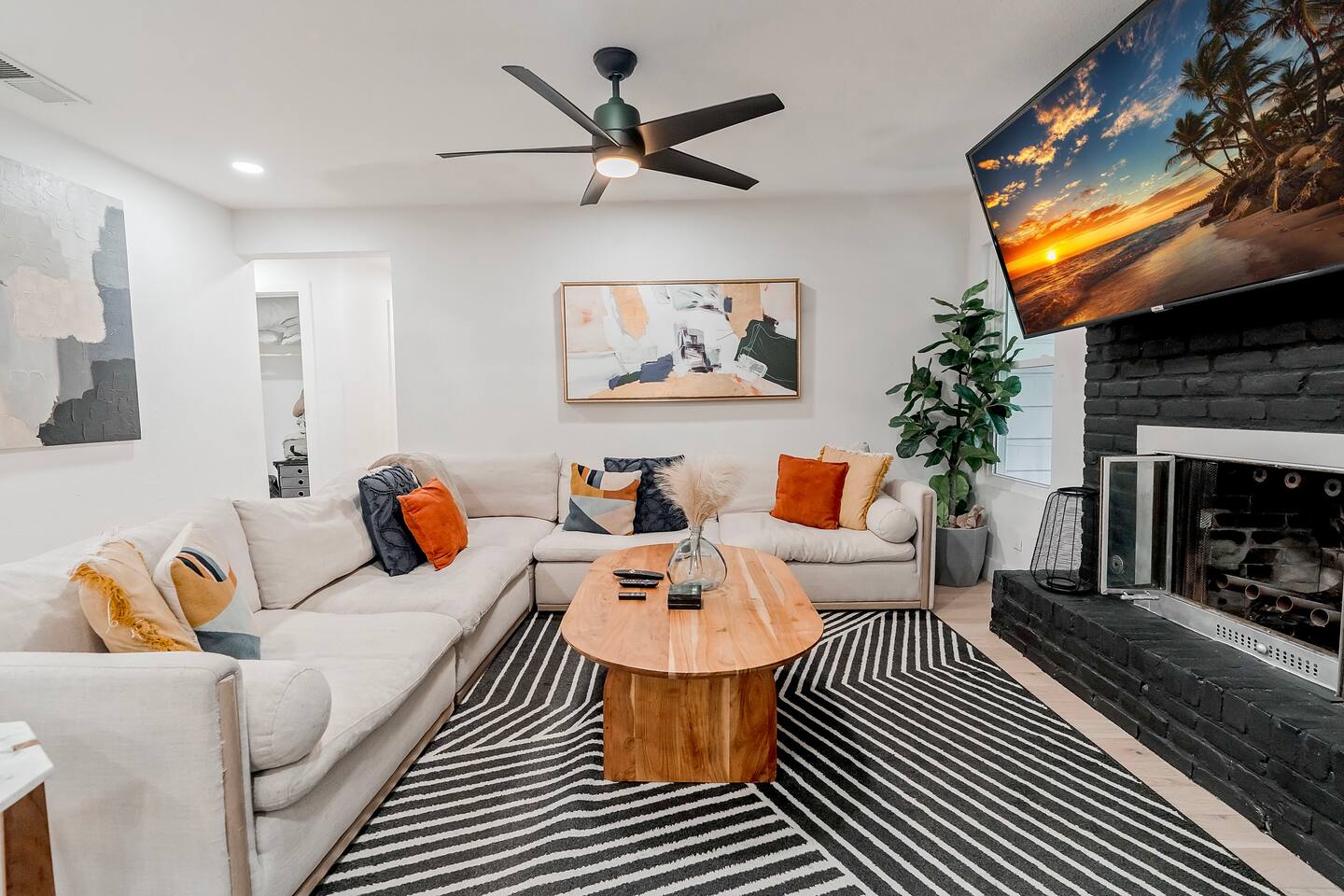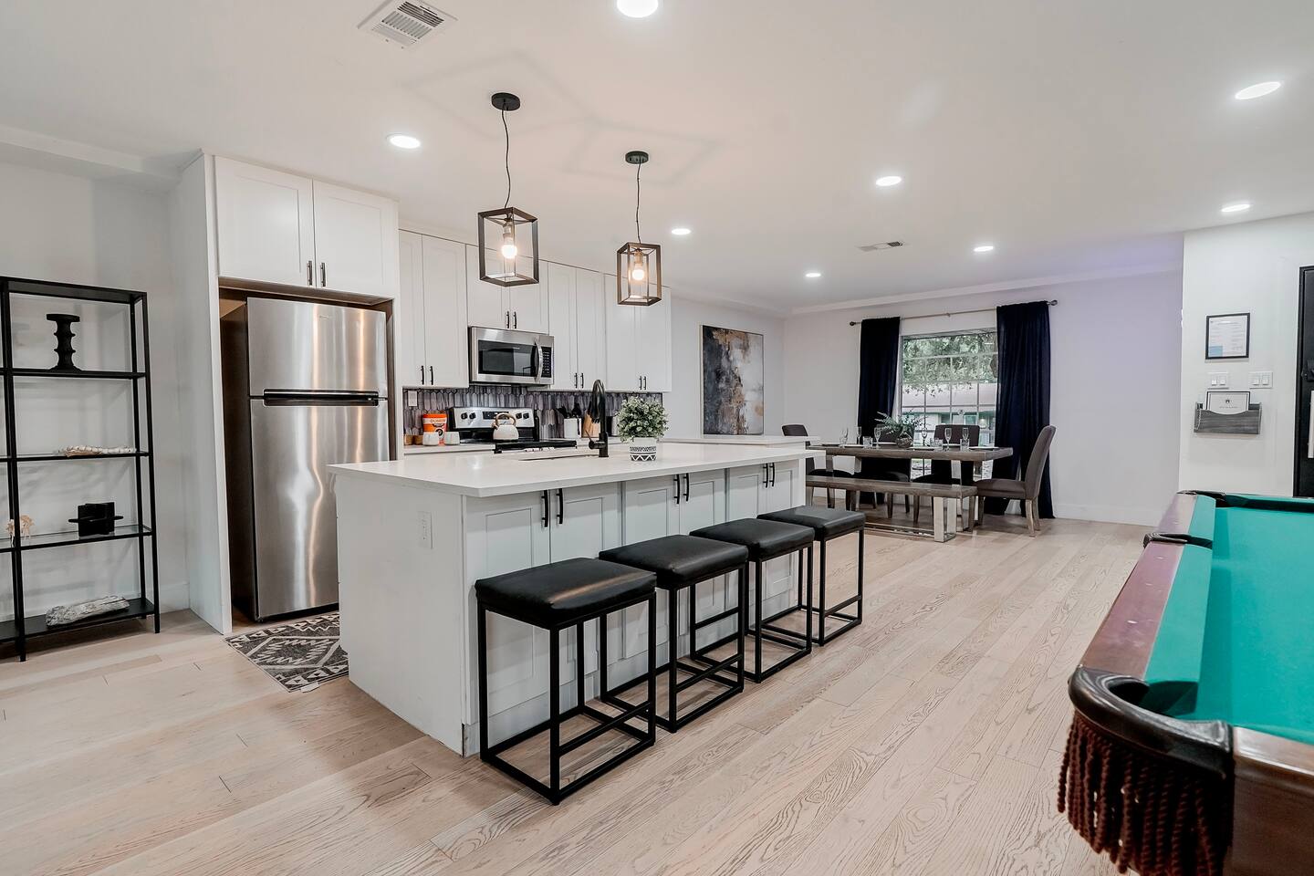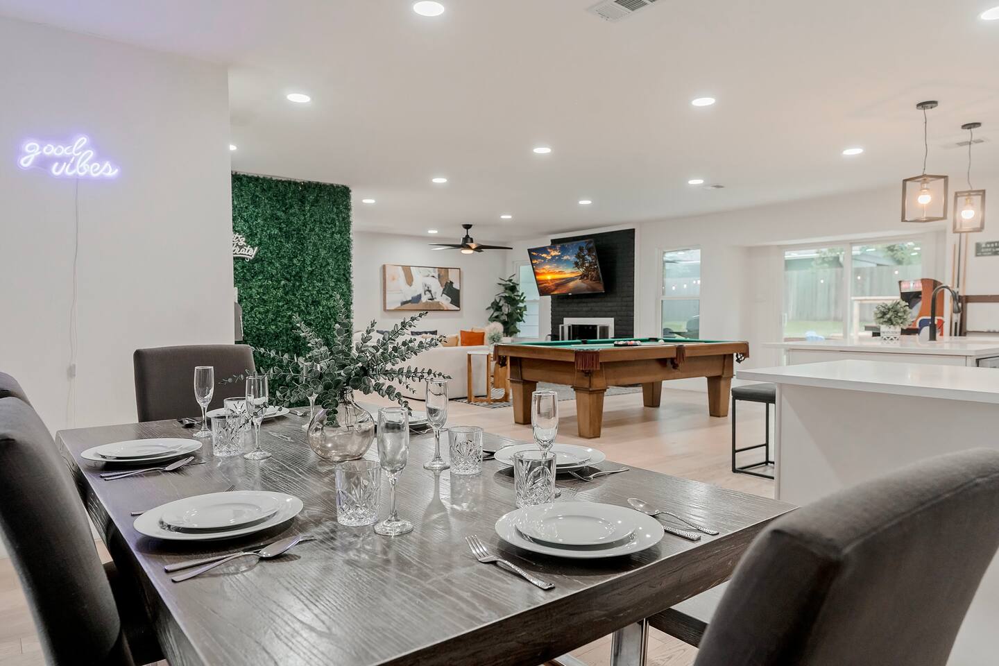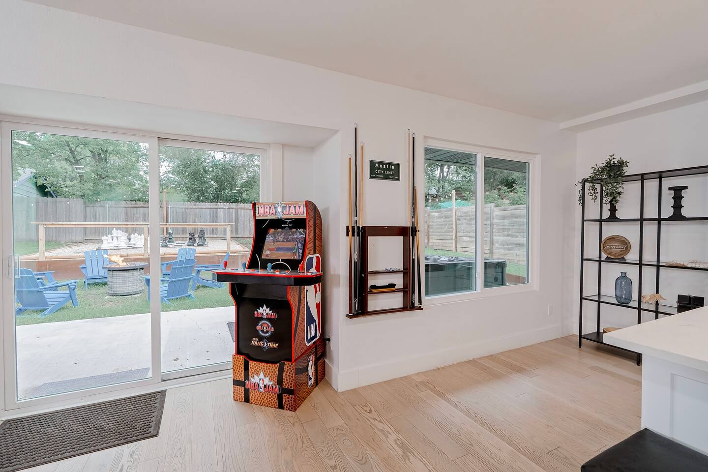 Welcome to this vibrant 4-bedroom, 3-bathroom home in East Austin—perfect for families, friends, or group getaways. With space for up to 10 guests, enjoy a fully equipped kitchen, arcade games, pool and ping pong tables, and a large TV. Step outside to relax in the hot tub, fire up the BBQ, or unwind by the outdoor fire pit under the Texas stars. Whether you're cooking, lounging, or playing, this home offers comfort, fun, and convenience just minutes from Austin’s top attractions.