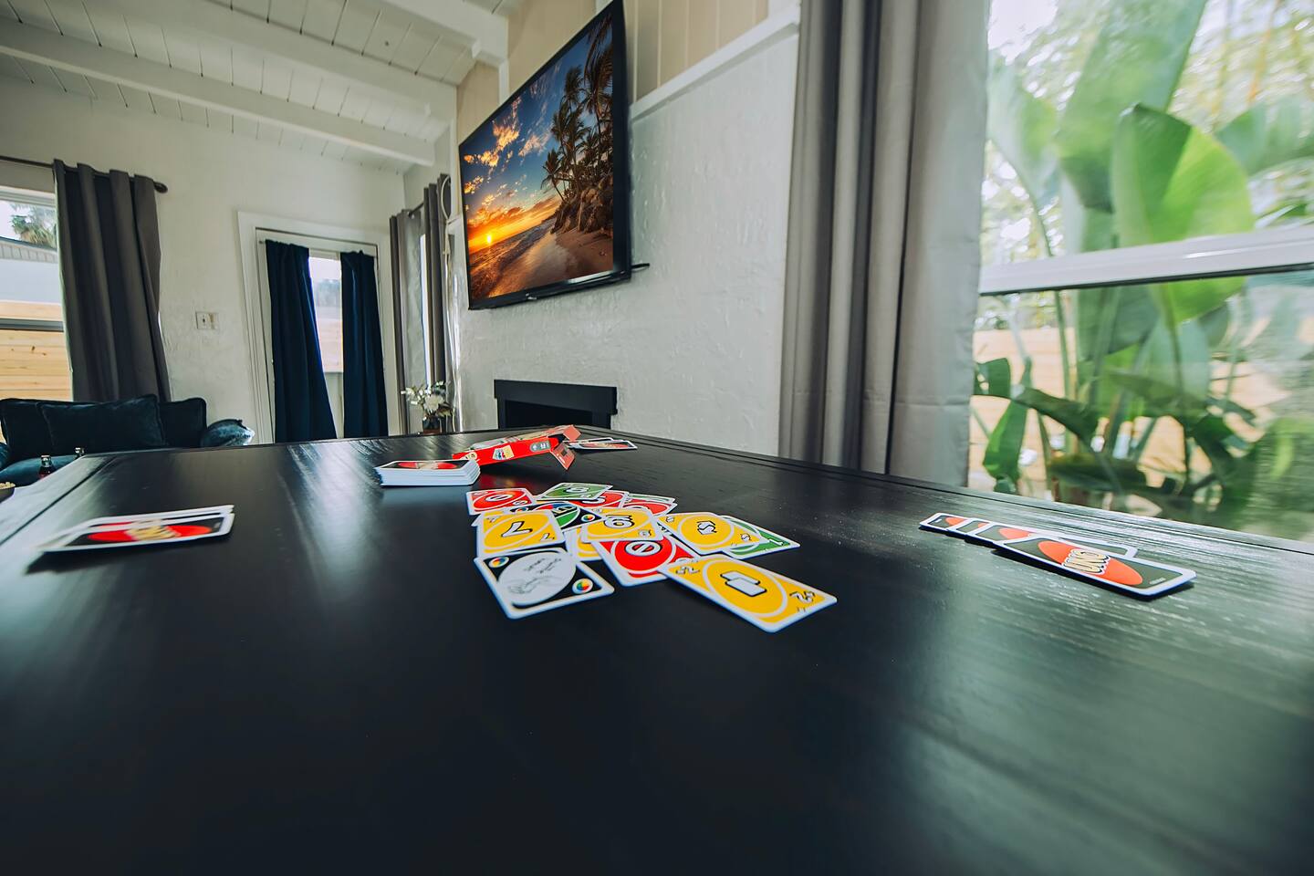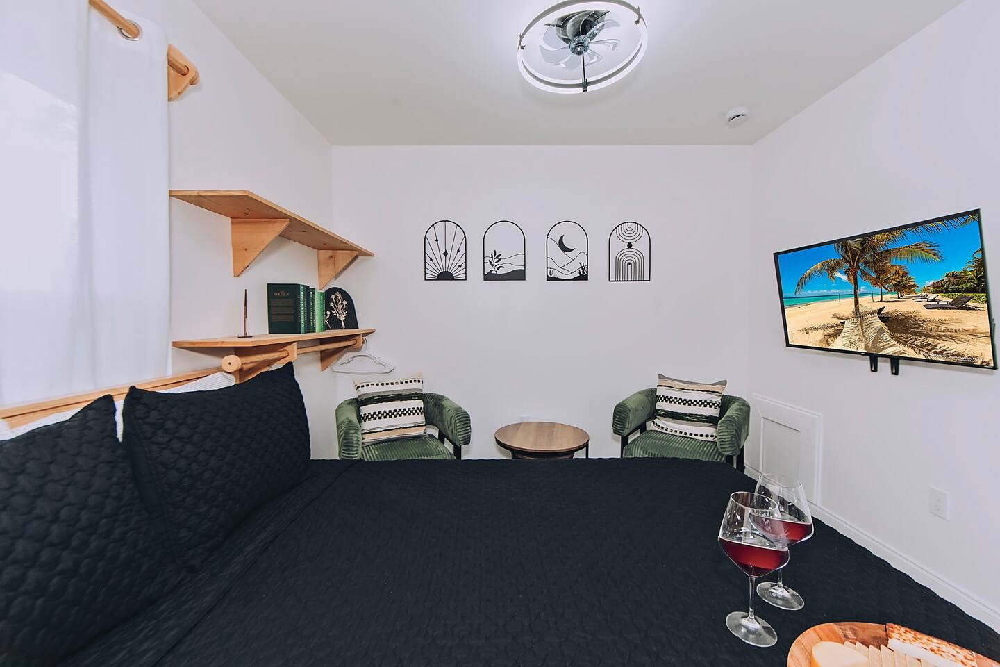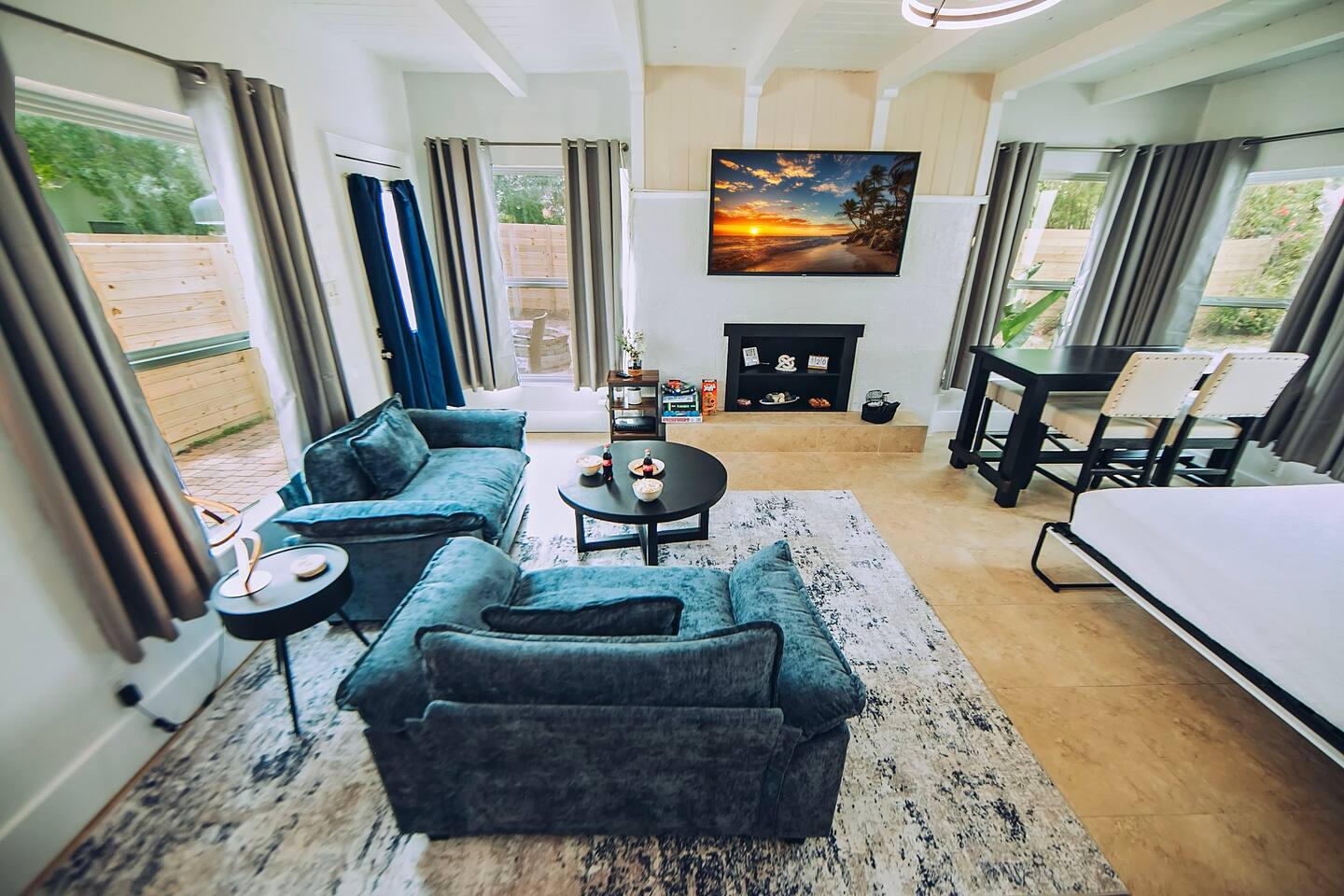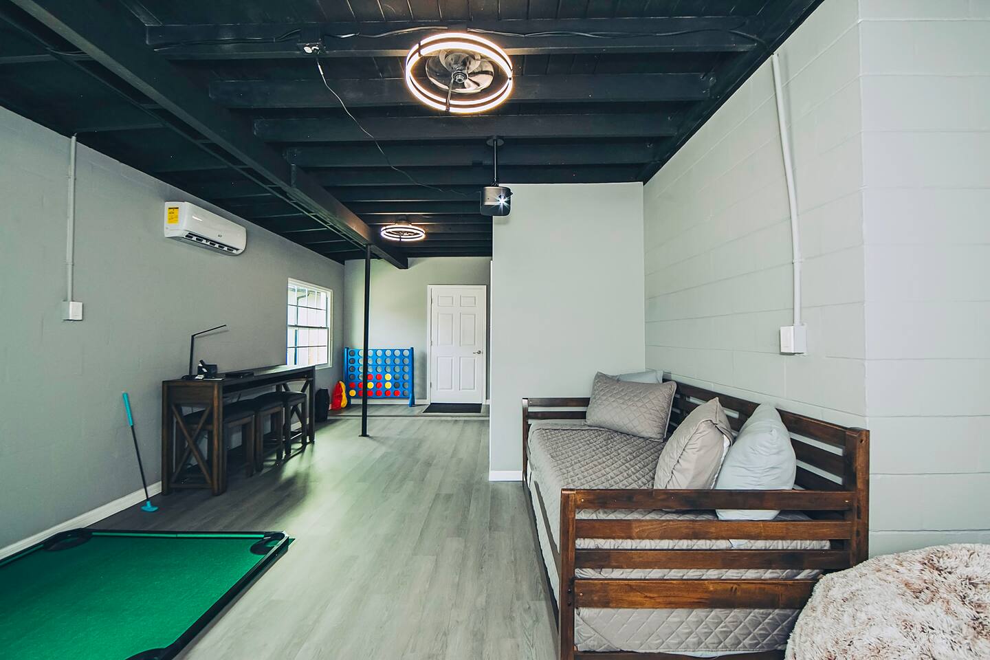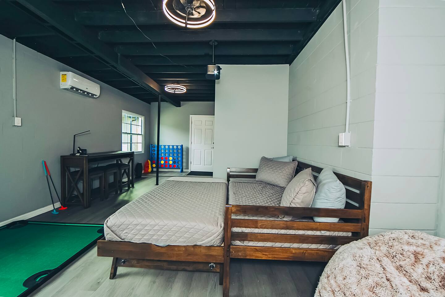 -Sleeps 12 Total Across two homes- • MAIN HOUSE HOME LAYOUT • Single-Level Holiday Home Living area, Kitchen, Dining Area, Bedrooms, Bathrooms, Movie Room • BEDROOMS • The home has 3 bedrooms Plus Den Bedroom 1 - King Bed (Sleeps 2 guests) Bedroom 2 - Queen sized Bed (Sleeps 2 guests) Bedroom 3 - Day Bed 2 Twins (Sleeps 2 guests) Den -Queen Murphy Bed (Sleeps 2 guests) • BATHROOMS • The home has 2 full bathrooms, and are supplied with bath essentials (shampoo, body wash), towels, toilet paper, and a hairdryer. • KITCHEN & DINING • Indulge in the charm of this abode where culinary creativity meets dining delight. Nestled beside the dining room, the kitchen is a spacious haven for your gastronomic adventures. A quaint space with a dash of style, it boasts modern & stylish appliances ready to bring your culinary visions to life. The intimate proximity to the dining room invites a seamless flow from preparation to presentation, allowing the tantalizing aromas to enchant the senses as you embark on a culinary journey. This home beckons you to savor not just meals but moments, creating a symphony of flavors and memories in the heart of its vibrant kitchen. • LIVING AREA • The home features a spacious and chic living room where comfort harmonizes with style. The generous layout encourages relaxation, adorned with plush seating, elegant decor, and an abundance of natural light cascading through expansive windows. This welcoming living area effortlessly links to the nearby dining space and kitchen The open design promotes a feeling of togetherness, facilitating effortless interaction among family and guests. Whether you're winding down after a day of activities or hosting friends, this living room offers a flexible and inviting atmosphere with convenient access to dining pleasures. • Movie Room • Kick back and unwind in this cozy entertainment haven, featuring a large projector screen for the ultimate cinematic experience. Sink into oversized bean bags and enjoy your favorite movies in relaxed comfort. Beyond movie nights, the space invites friendly competition with a fun pool mini golf game—perfect for entertaining both kids and adults. Whether you’re streaming a blockbuster or challenging your friends to a game, this room is all about laid-back fun and memorable moments. • TREE HOUSE HOME LAYOUT • Two-Story A-Frame Treehouse Living area, Kitchen, Dining Area, Bedroom, open Loft • BEDROOMS • The home has bedrooms Bedroom 1 - King Bed (Sleeps 2 guests) Bedroom 2 (Loft)- Queen sized Bed (Sleeps 2 guests) • BATHROOMS • The home has a 1 full bathroom, and is supplied with bath essentials (shampoo, body wash), towels, toilet paper, and a hairdryer. • SHEETS/TOWELS • The home is professionally cleaned before every stay with clean linens and towels. Fresh new sheets, linens, and towels will be provided for your stay. We will prepare based on the number of guests. Linens (sheet sets for bed) Blankets Bath Towels Washcloths Hand Towels • KITCHEN & DINING • Indulge in the charm of this abode where culinary creativity meets dining delight. Nestled beside the dining room, the kitchen is a cozy haven for your gastronomic adventures. A quaint space with a dash of style, it boasts modern & stylish appliances ready to bring your culinary visions to life. The intimate proximity to the dining room invites a seamless flow from preparation to presentation, allowing the tantalizing aromas to enchant the senses as you embark on a culinary journey. This home beckons you to savor not just meals but moments, creating a symphony of flavors and memories in the heart of its vibrant kitchen. • LIVING AREA • The home features a chic living room where comfort harmonizes with style. The intimate layout encourages relaxation, adorned with plush seating, elegant decor, and an abundance of natural light cascading through expansive windows. This welcoming living area effortlessly links to the nearby dining space and kitchen The open design promotes a feeling of togetherness, facilitating effortless interaction among family and guests. Whether you're winding down after a day of activities or hosting friends, this living room offers a flexible and inviting atmosphere with convenient access to dining pleasures. • LOCATION • St. Augustine, Florida, is nestled along the northeastern coast of the state, positioned approximately 40 miles south of Jacksonville. This historic city boasts a picturesque setting along the Matanzas Bay and the Atlantic Ocean. Renowned for its well-preserved Spanish colonial architecture, St. Augustine is the oldest continuously inhabited European-established settlement in the continental United States. The city's cobblestone streets wind through a charming historic district filled with landmarks, museums, and centuries-old structures. With its coastal beauty, rich history, and vibrant cultural scene, St. Augustine offers a unique and enchanting destination for visitors. 🏛️ Historic & Cultural Sites Castillo de San Marcos – 4 min drive (1.4 miles) Historic District – 4 min drive (1.2 miles) Fountain of Youth Archaeological Park – 6 min drive (2.0 miles) Lightner Museum – 5 min drive (1.5 miles) Ximenez-Fatio House Museum – 5 min drive (1.4 miles) Lincolnville Museum & Cultural Center – 6 min drive (1.7 miles) 🐊 Family-Friendly Attractions St. Augustine Alligator Farm Zoological Park – 3 min drive (0.6 miles) St. Augustine Lighthouse & Maritime Museum – 3 min drive (0.7 miles) Whetstone Chocolate Factory – 5 min drive (1.7 miles) St. Augustine Distillery – 6 min drive (1.9 miles) 🌊 Beaches & Nature Anastasia State Park – 5 min drive (2.7 miles) St. Augustine Beach – 8 min drive (4.0 miles) Vilano Beach – 10 min drive (4.5 miles) These are just a few highlights of the diverse attractions St. Augustine has to offer. Whether you're into arts and culture or outdoor activities, the "Old City" definitely has something for ever
