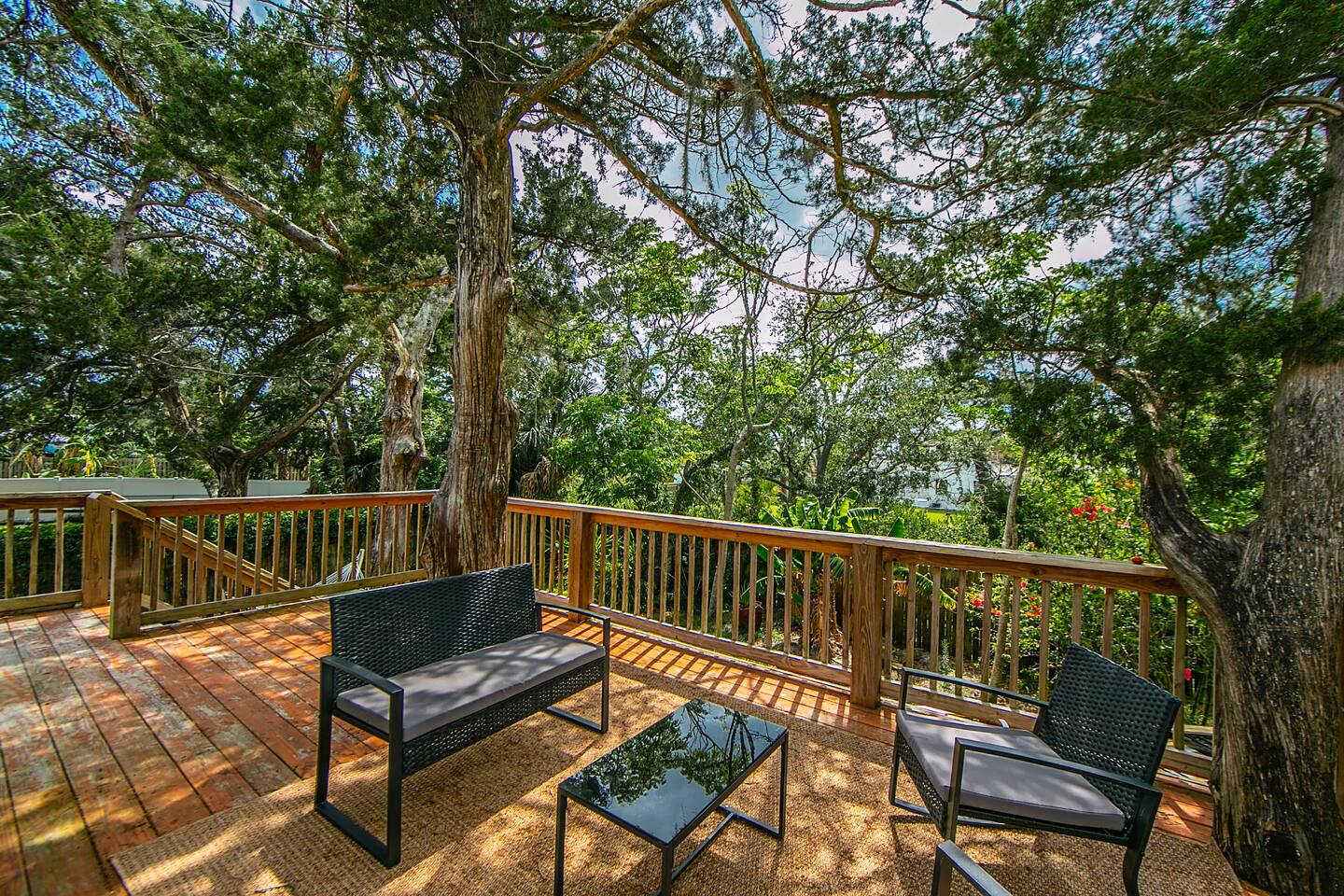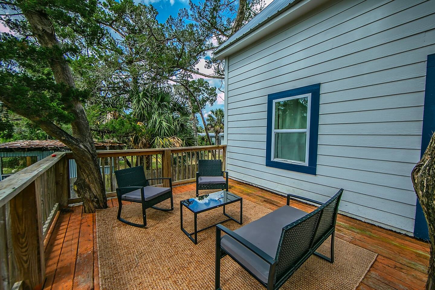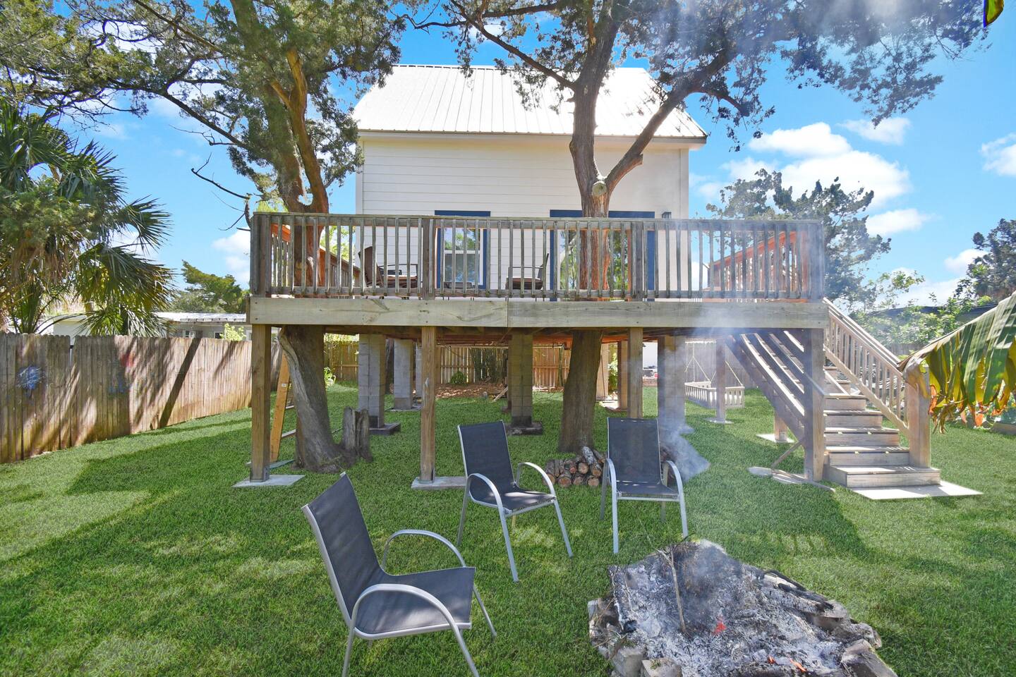 Welcome to your unique getaway on Anastasia Island just 5 minutes from both the beach and historic downtown St. Augustine. This one-of-a-kind property features a cozy main house perfect for families & couples, plus a charming treehouse tucked just behind it—ideal for peaceful mornings, romantic evenings, or solo recharge time. Enjoy coffee on the spacious patio or treehouse deck, swing under the oaks, and relax by the fire pit under the stars. Close to everything, yet feels like a hidden retreat