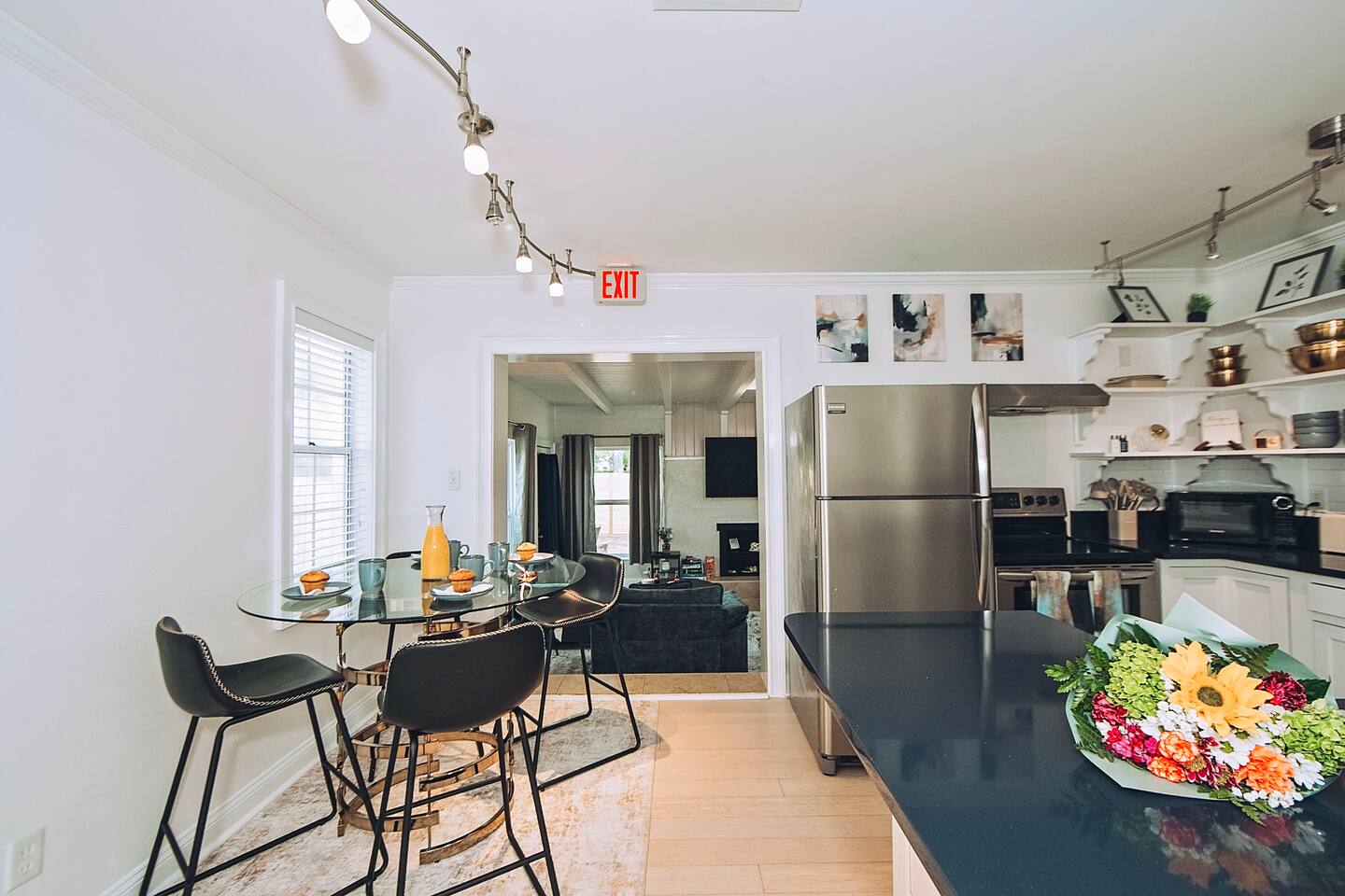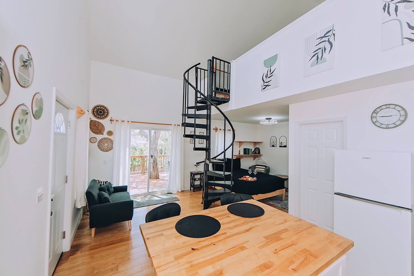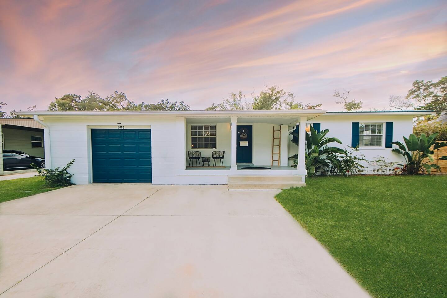 Welcome to your unique getaway on Anastasia Island just 5 minutes from both the beach and historic downtown St. Augustine. This one-of-a-kind property features a cozy main house perfect for families & couples, plus a charming treehouse tucked just behind it—ideal for peaceful mornings, romantic evenings, or solo recharge time. Enjoy coffee on the spacious patio or treehouse deck, swing under the oaks, and relax by the fire pit under the stars. Close to everything, yet feels like a hidden retreat