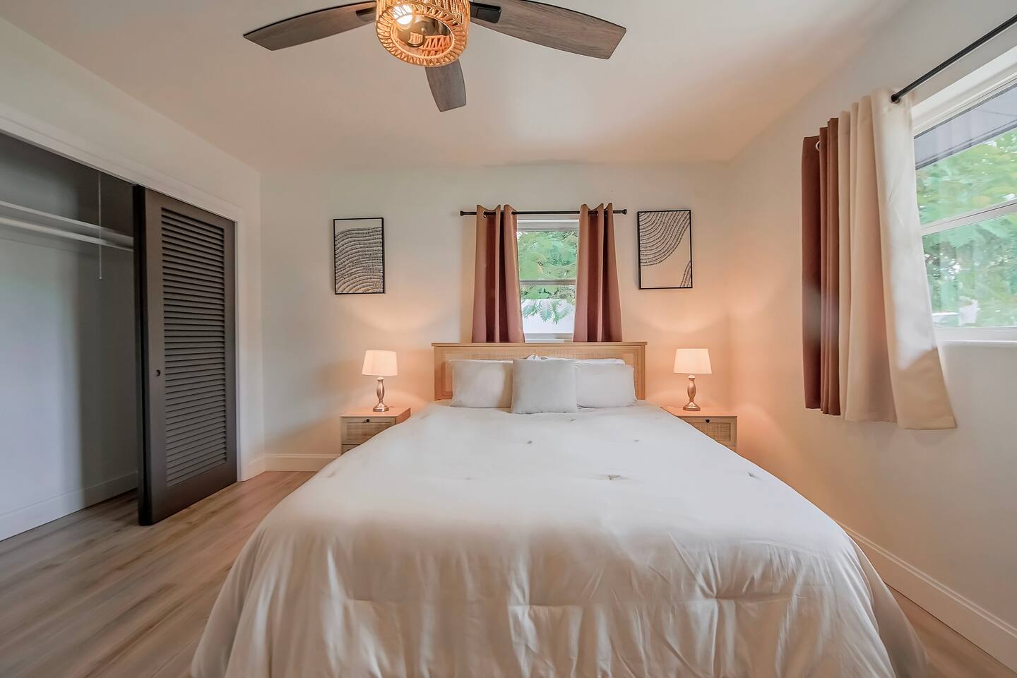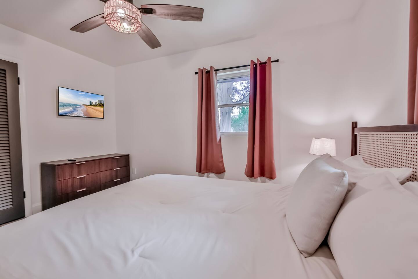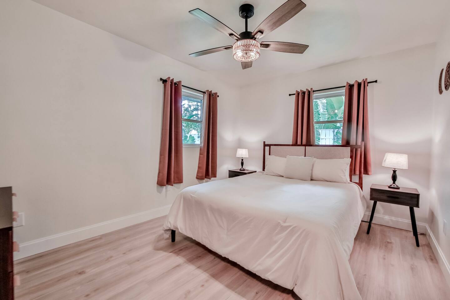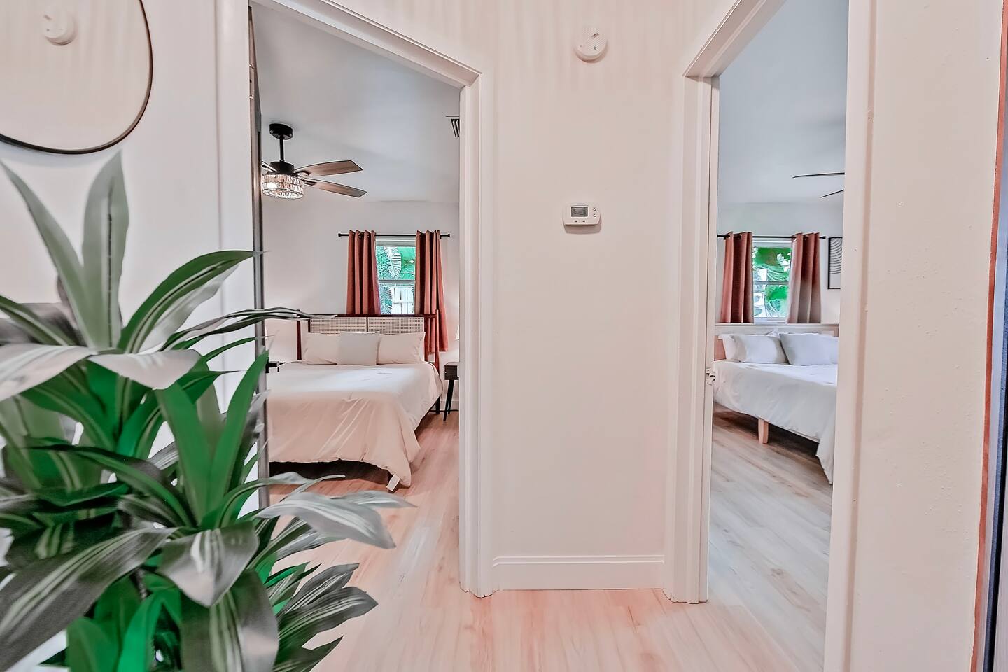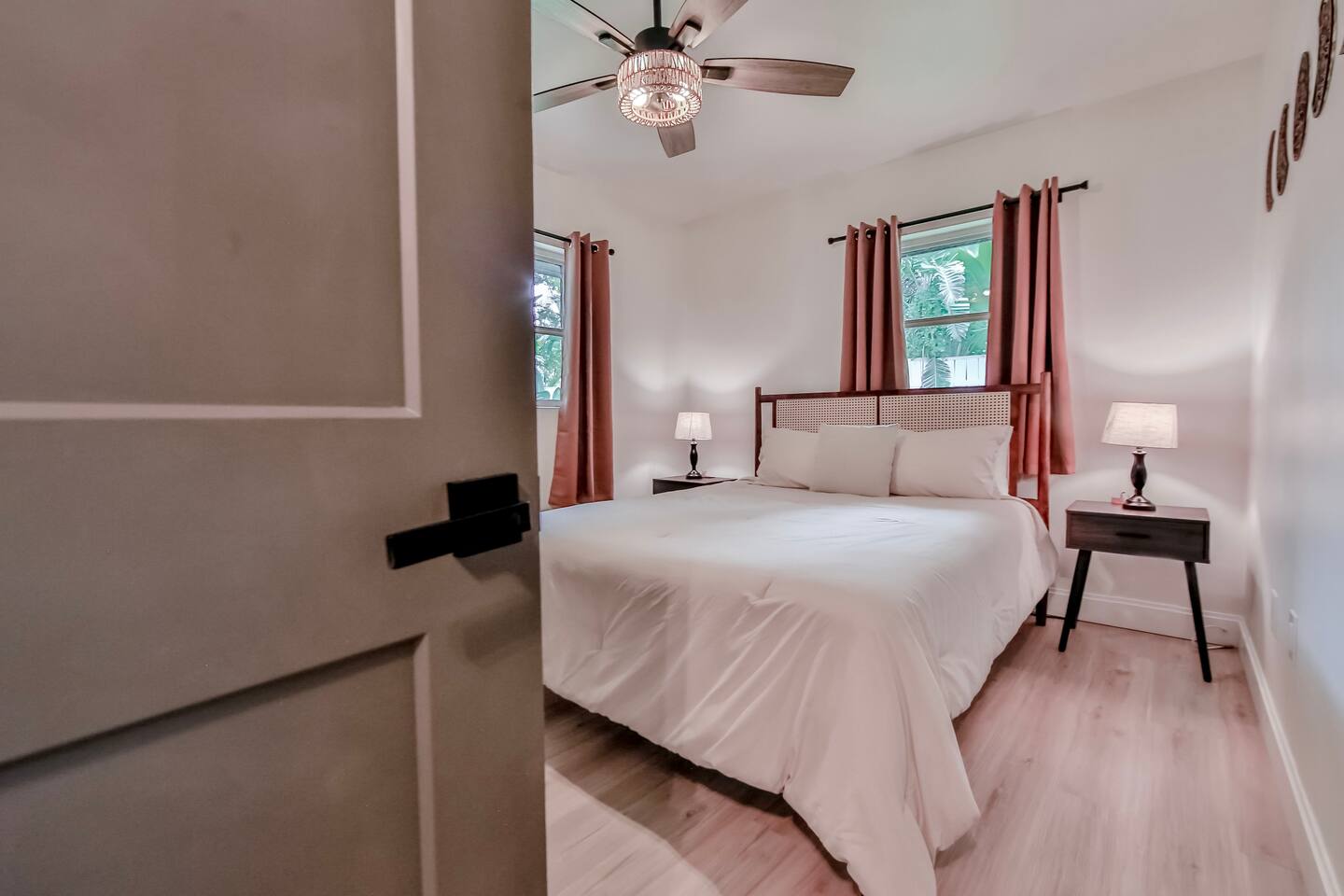 Modern coastal 2BR/1BA private half-duplex just 8 minutes from Siesta Key Beach. Enjoy your own side of the home with two queen bedrooms, a bright living room with Smart TV, and a fully equipped kitchen for easy meals. The updated bathroom features a walk-in shower and fresh towels. Perfect for couples, friends, families, or remote workers. Make this stylish Sarasota duplex rental your home away from home. Your perfect Florida retreat awaits.