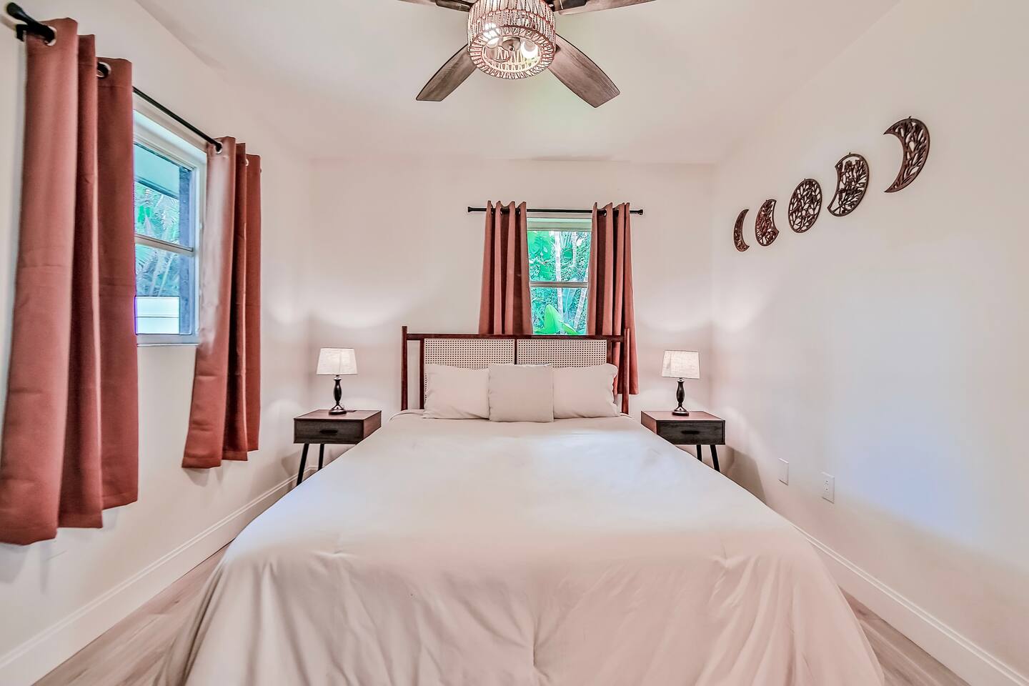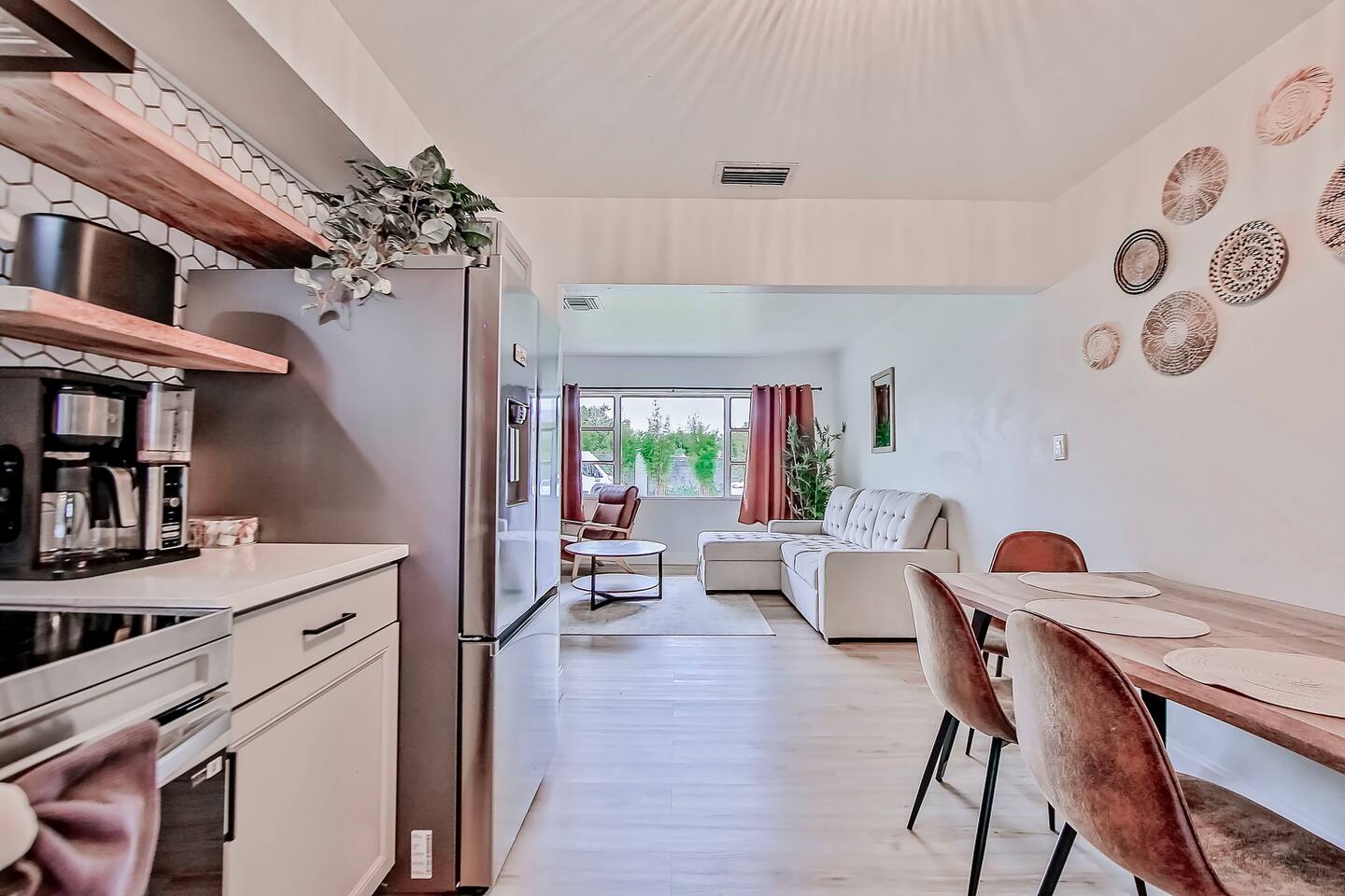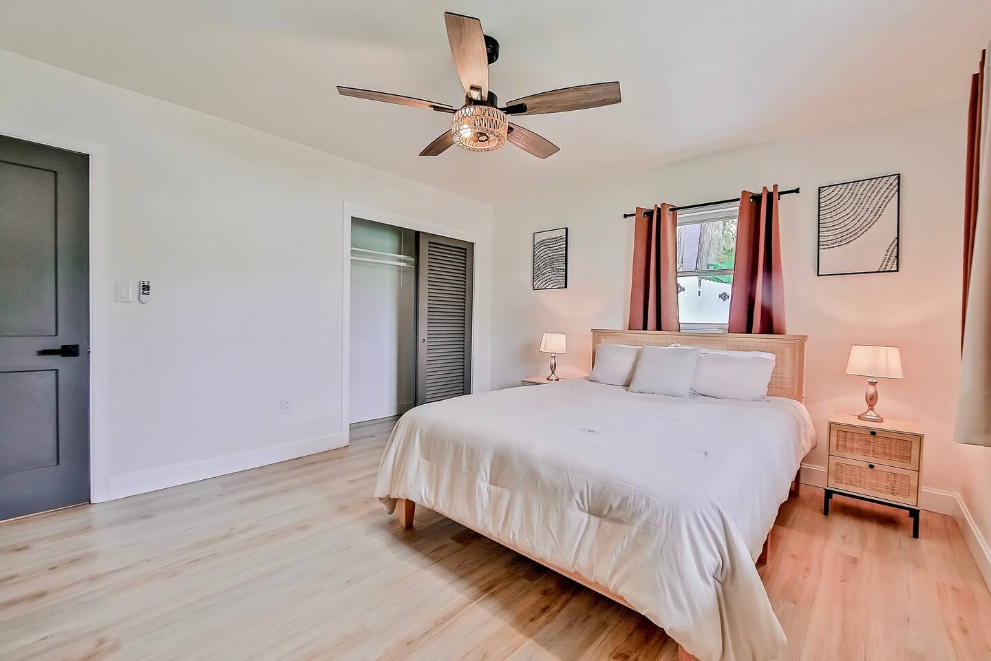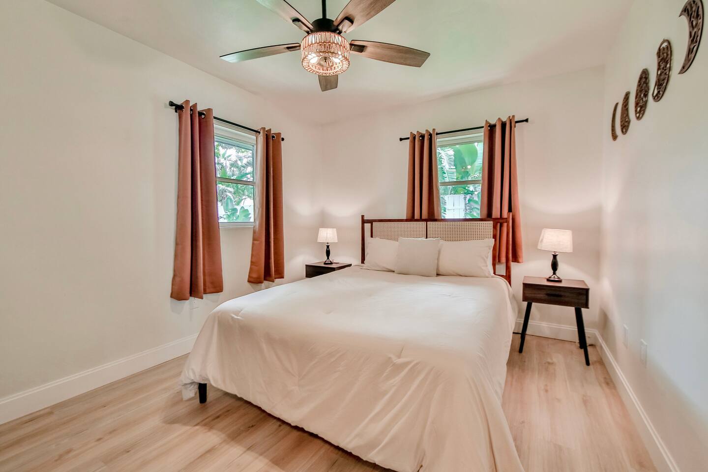 Modern coastal 2BR/1BA private half-duplex just 8 minutes from Siesta Key Beach. Enjoy your own side of the home with two queen bedrooms, a bright living room with Smart TV, and a fully equipped kitchen for easy meals. The updated bathroom features a walk-in shower and fresh towels. Perfect for couples, friends, families, or remote workers. Make this stylish Sarasota duplex rental your home away from home. Your perfect Florida retreat awaits.