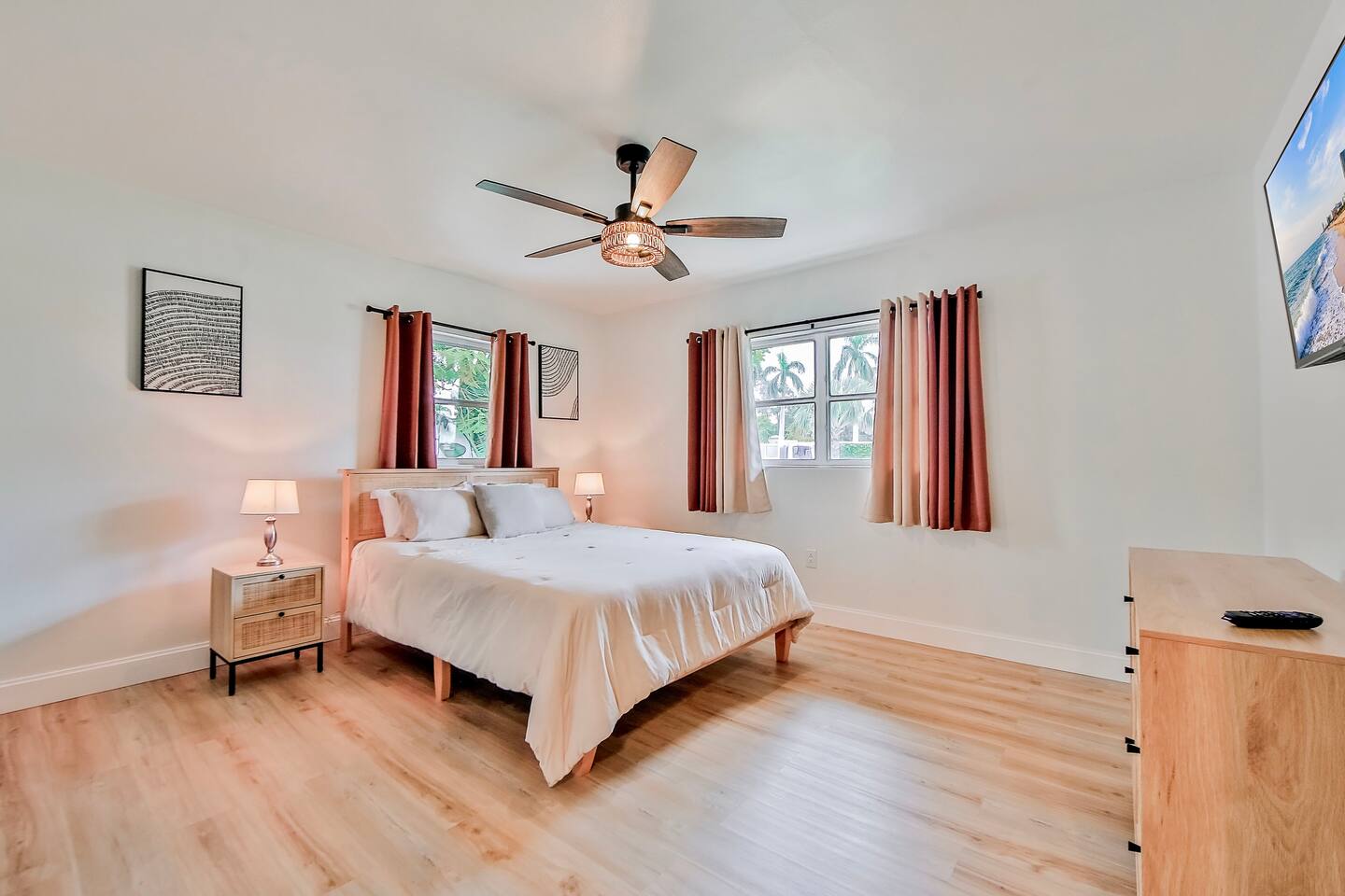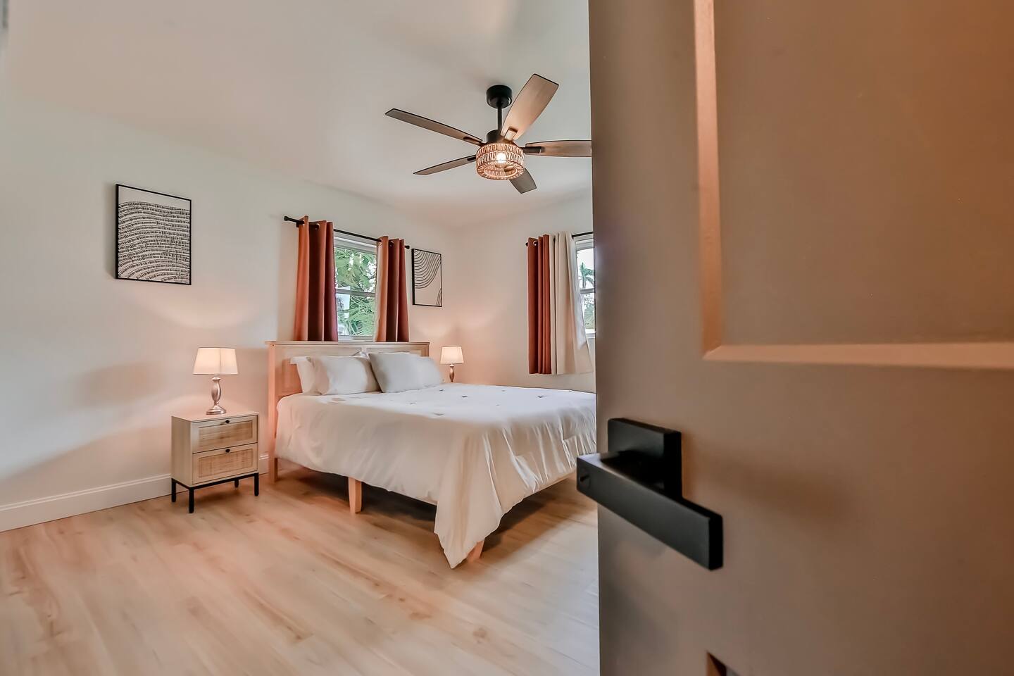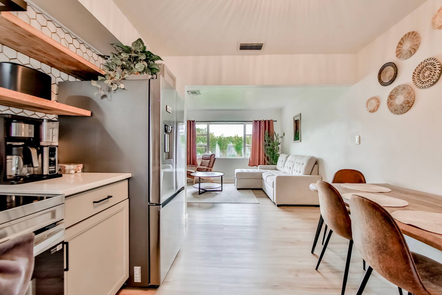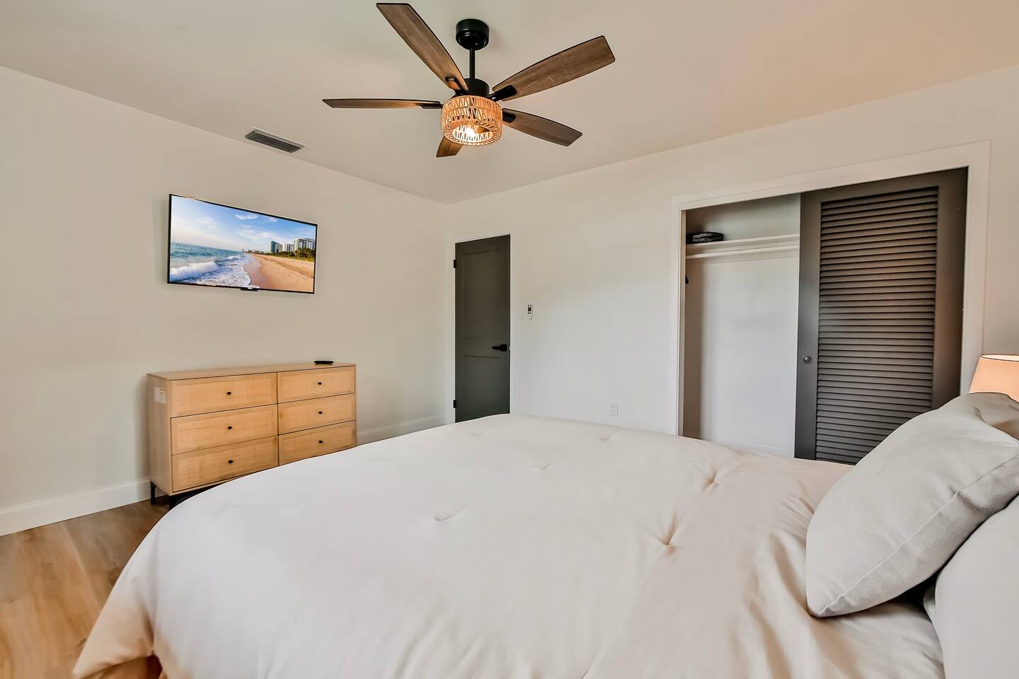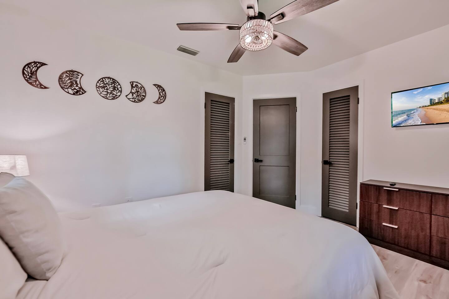 Modern coastal 2BR/1BA private half-duplex just 8 minutes from Siesta Key Beach. Enjoy your own side of the home with two queen bedrooms, a bright living room with Smart TV, and a fully equipped kitchen for easy meals. The updated bathroom features a walk-in shower and fresh towels. Perfect for couples, friends, families, or remote workers. Make this stylish Sarasota duplex rental your home away from home. Your perfect Florida retreat awaits.
