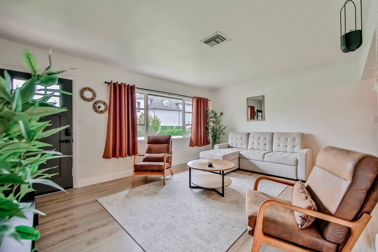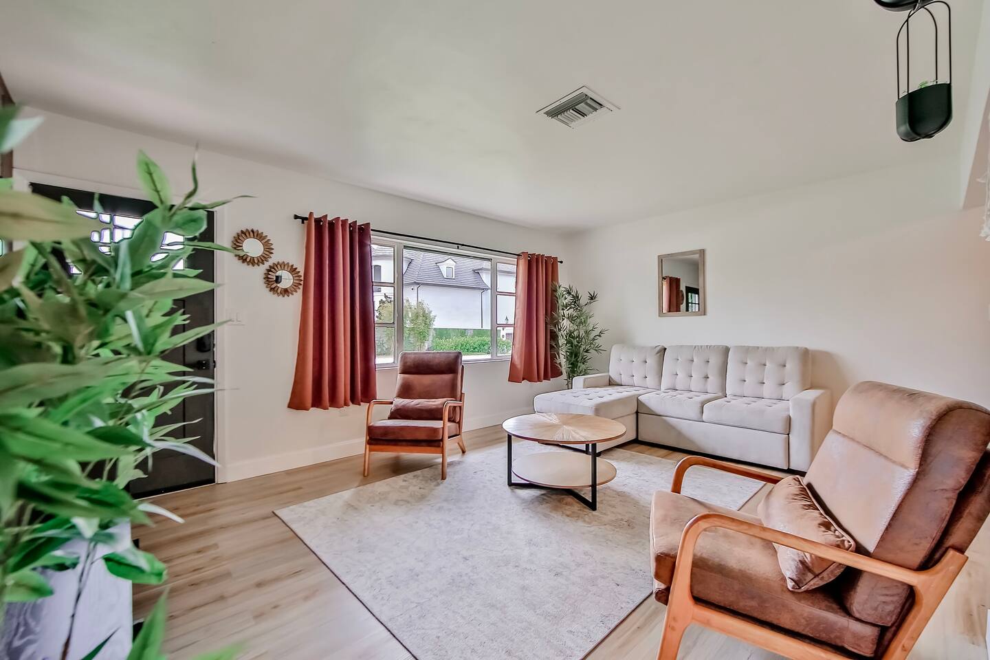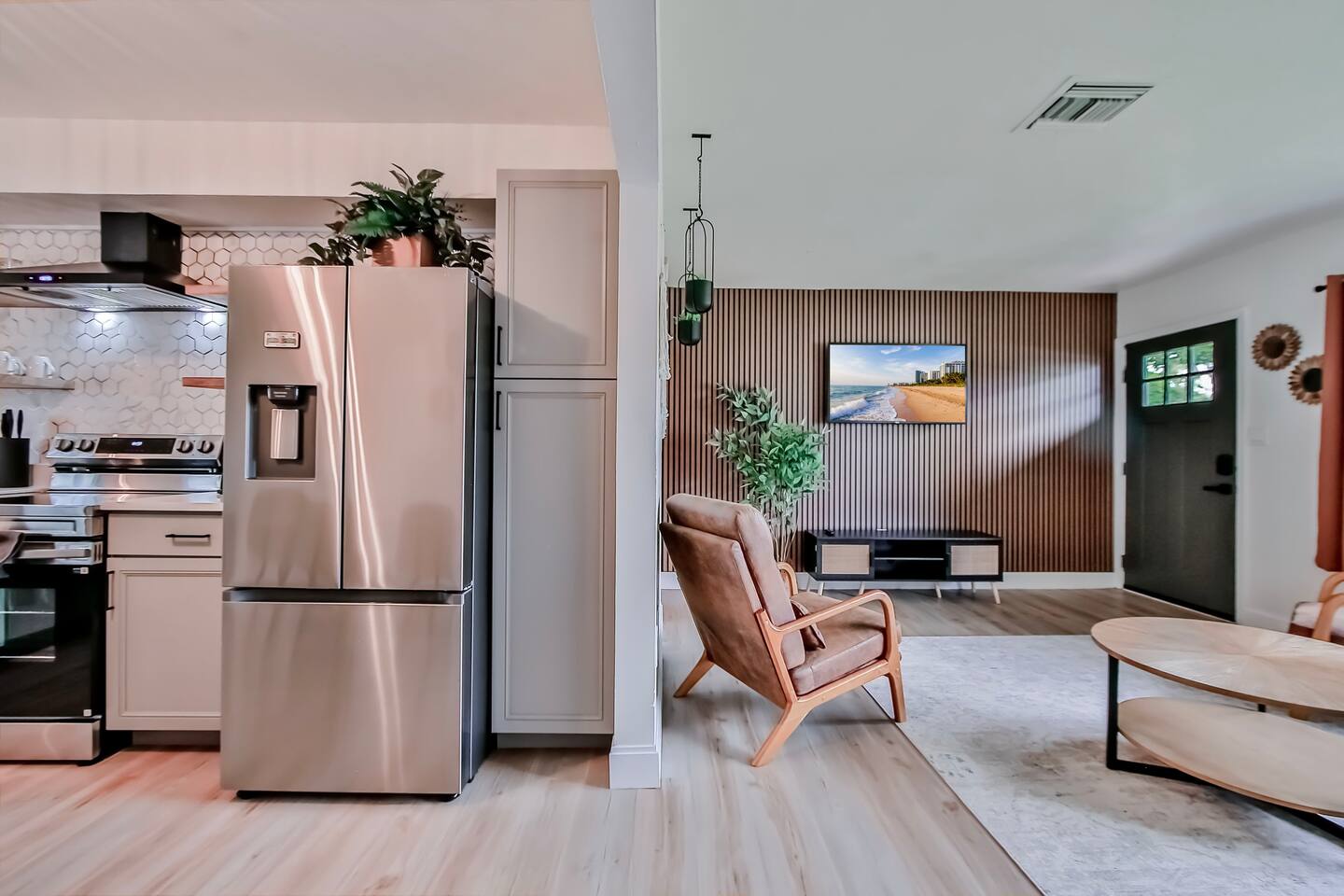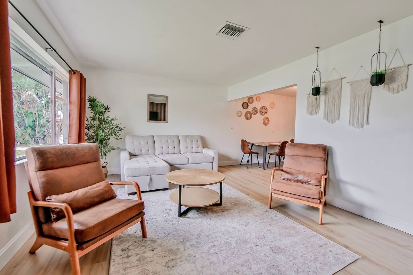 Modern coastal 2BR/1BA private half-duplex just 8 minutes from Siesta Key Beach. Enjoy your own side of the home with two queen bedrooms, a bright living room with Smart TV, and a fully equipped kitchen for easy meals. The updated bathroom features a walk-in shower and fresh towels. Perfect for couples, friends, families, or remote workers. Make this stylish Sarasota duplex rental your home away from home. Your perfect Florida retreat awaits.