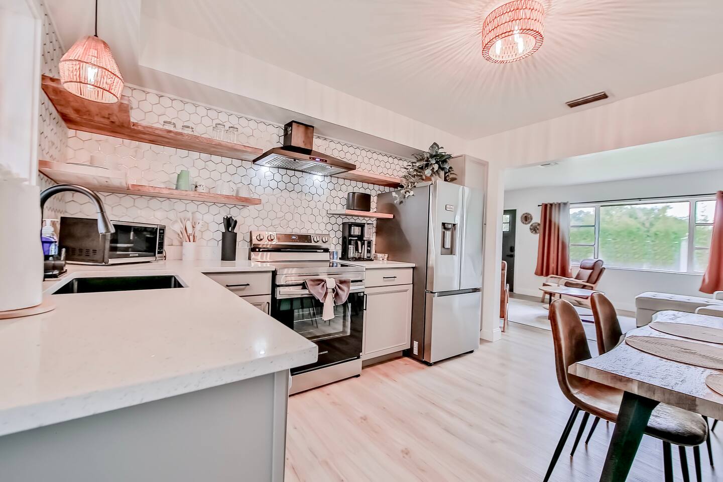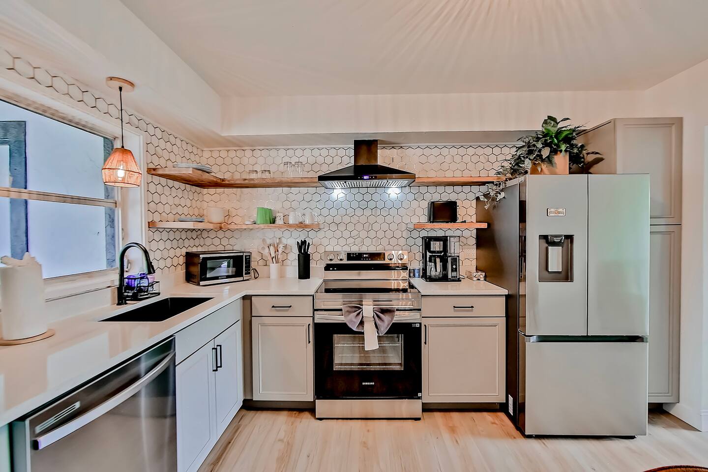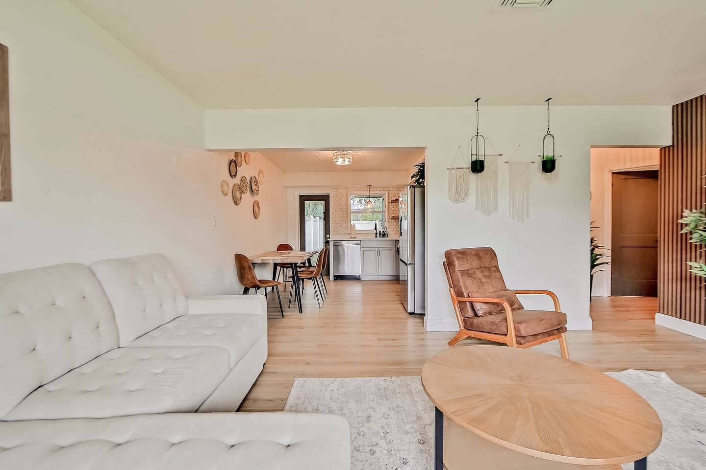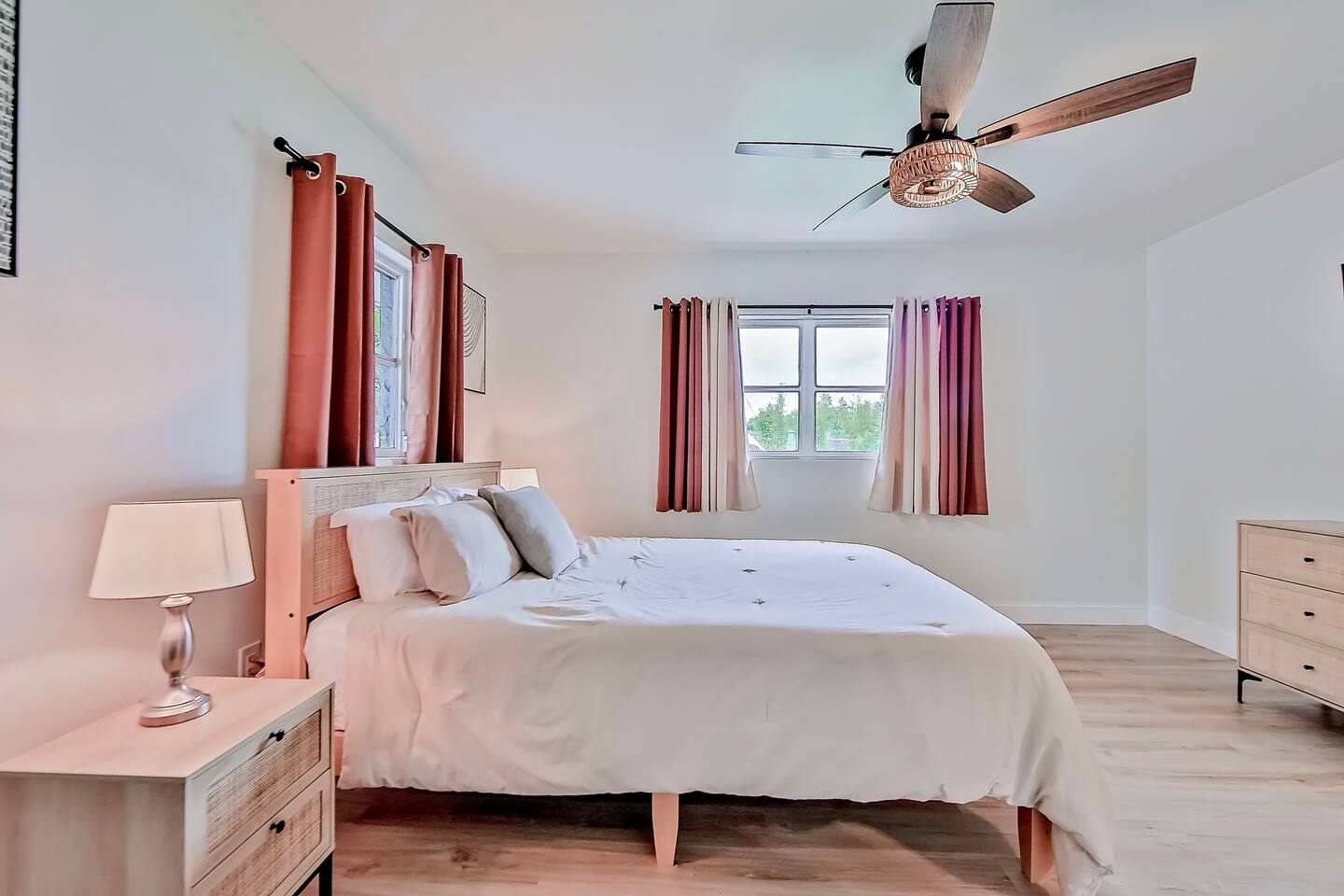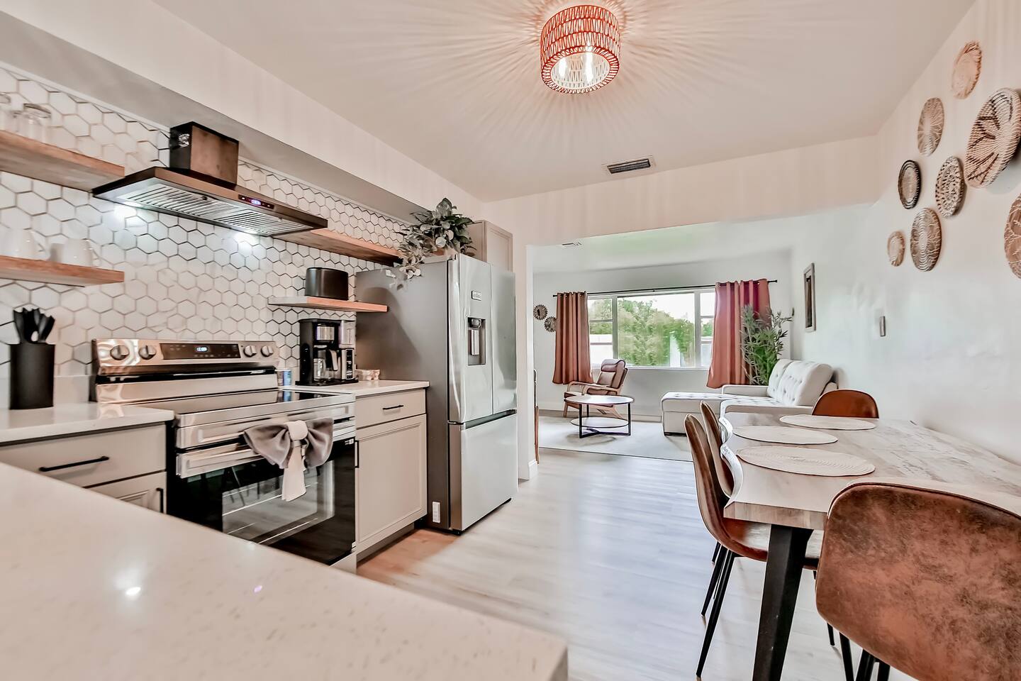 Modern coastal 2BR/1BA private half-duplex just 8 minutes from Siesta Key Beach. Enjoy your own side of the home with two queen bedrooms, a bright living room with Smart TV, and a fully equipped kitchen for easy meals. The updated bathroom features a walk-in shower and fresh towels. Perfect for couples, friends, families, or remote workers. Make this stylish Sarasota duplex rental your home away from home. Your perfect Florida retreat awaits.